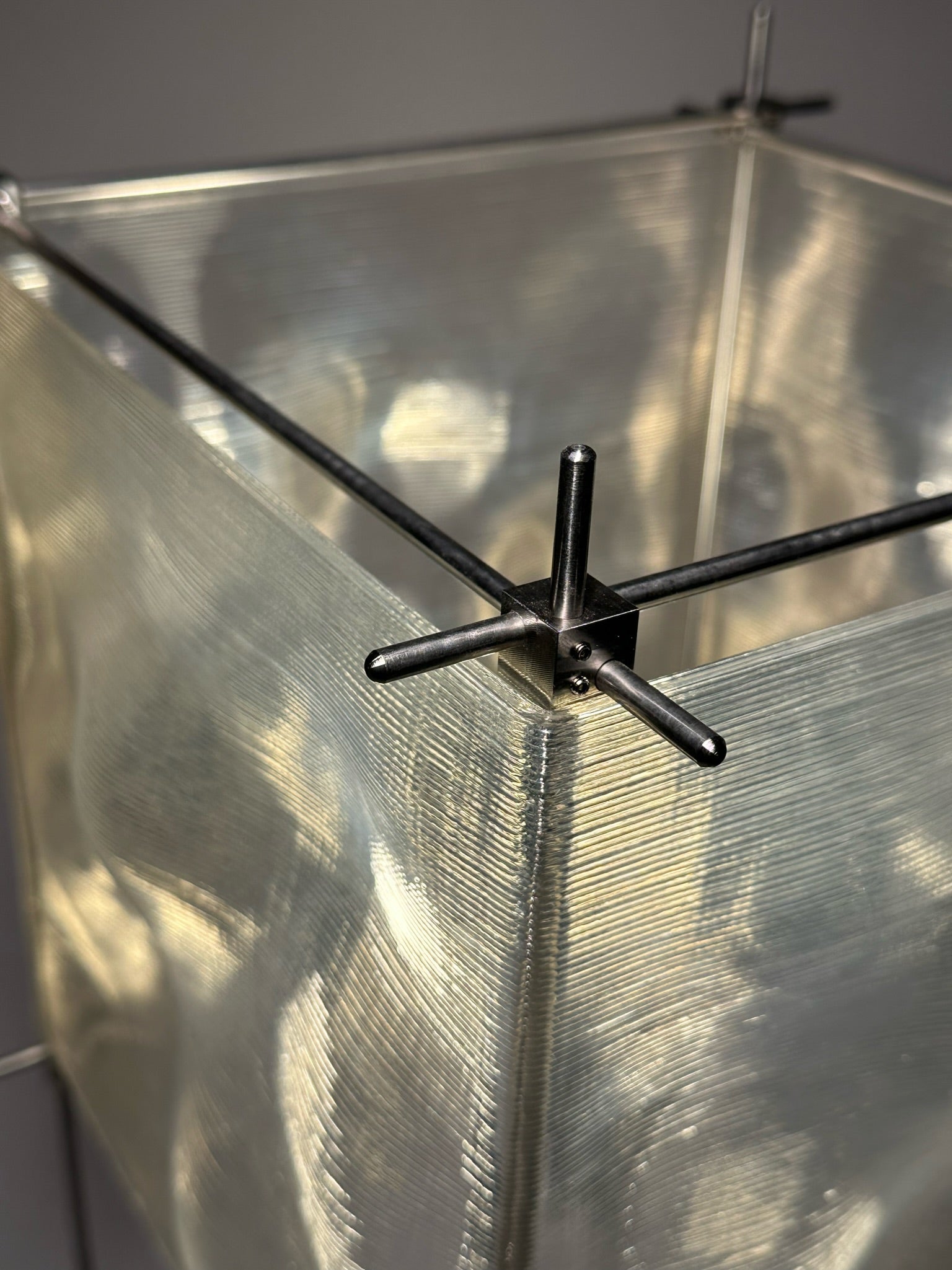 Dynks lamp merges 3D-printed designs made from recycled plant-based plastic [PLA] with a modular stainless steel system. It’s a blend of sustainable materials and functional design, offering a customizable and durable lighting solution for your space.