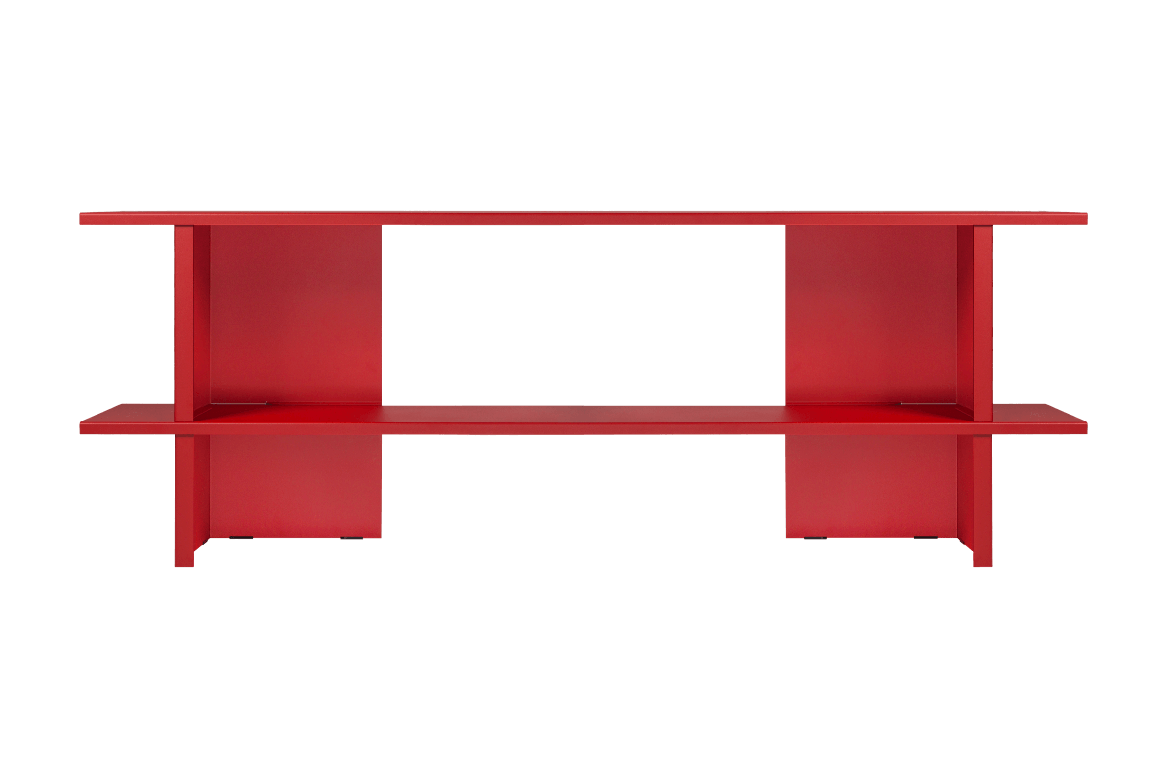 Meet Hes — a classic low shelving unit, a suitable TV stand or storage for your books, records and décors. The simplistic bent steel construction with protruding elements leaves lots of room for storing and is a discreet nod to minimalism admirers. Available in classic grey and crisp red color, Hes has capacity to become an outstanding hero piece in your living room or home office.