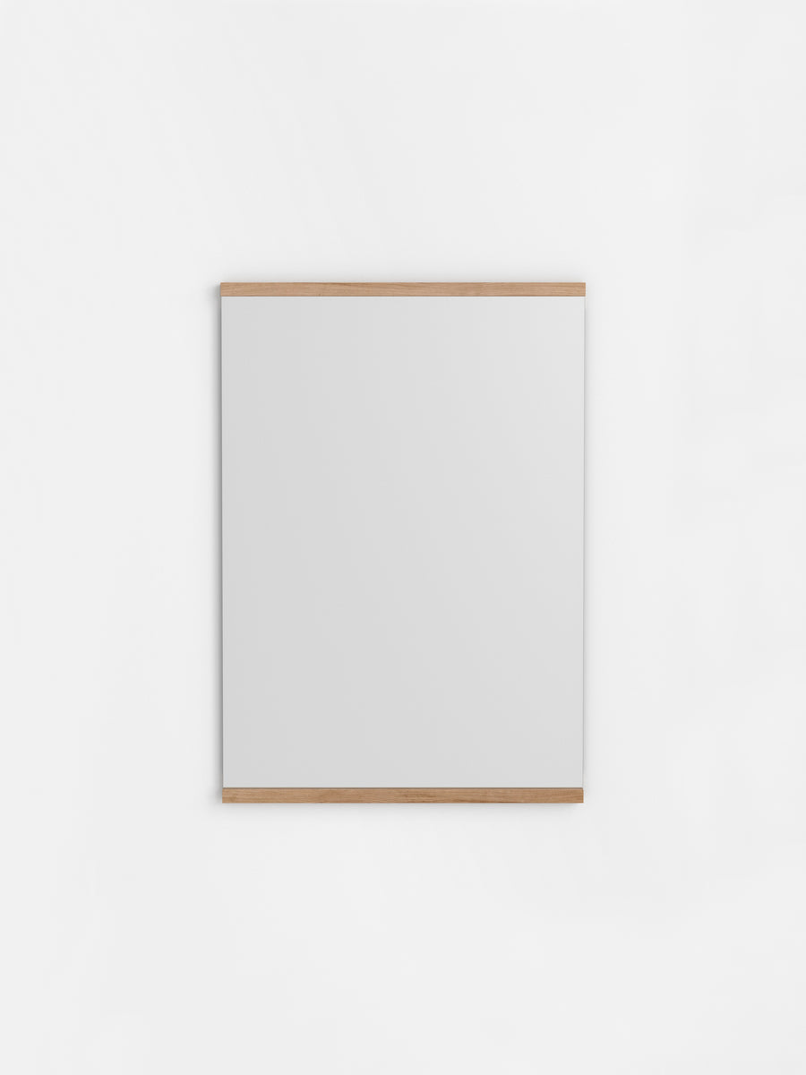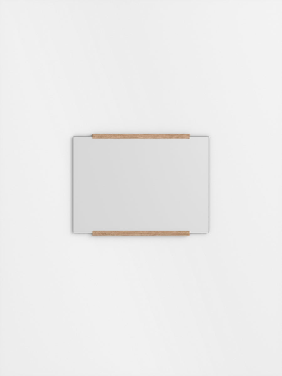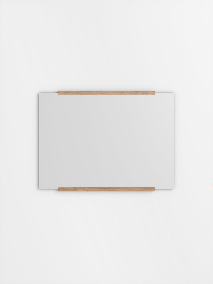 Rectangular Wall Mirror is a sharp addition to the Mirror Collection. Consisting of only two elements, a mirror glass and two wooden lists, the design is clean and minimal. Focussing on Nordic wood species, the wooden lists are made from either ash or oak, adding a warm and tactile touch to the straightforward design.