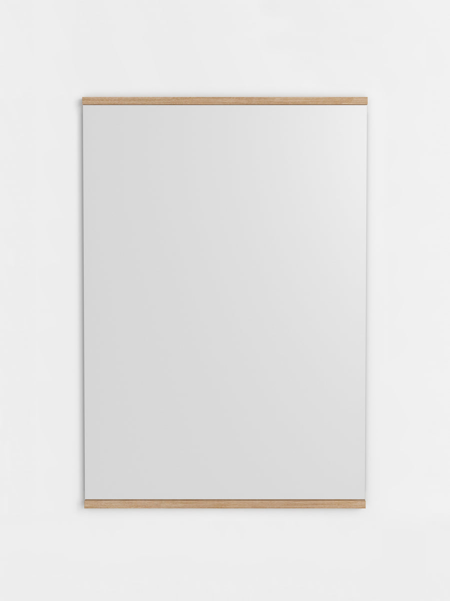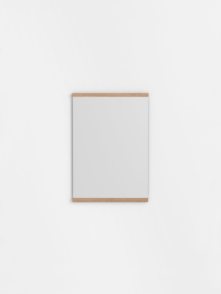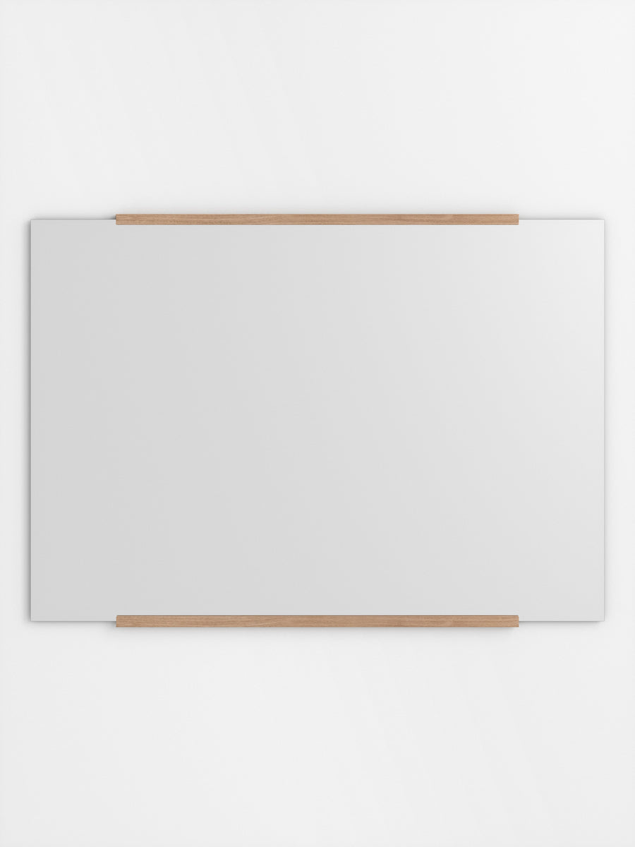 Rectangular Wall Mirror is a sharp addition to the Mirror Collection. Consisting of only two elements, a mirror glass and two wooden lists, the design is clean and minimal. Focussing on Nordic wood species, the wooden lists are made from either ash or oak, adding a warm and tactile touch to the straightforward design.