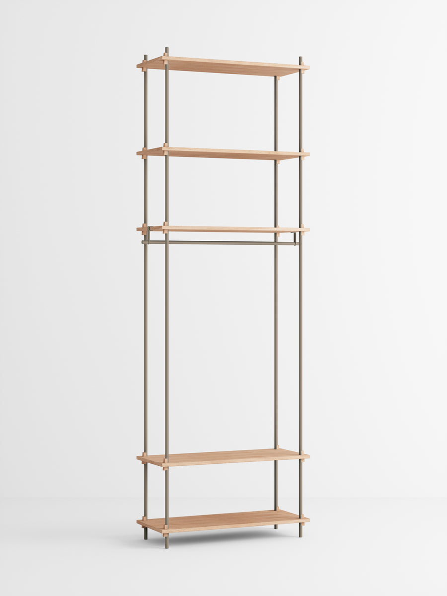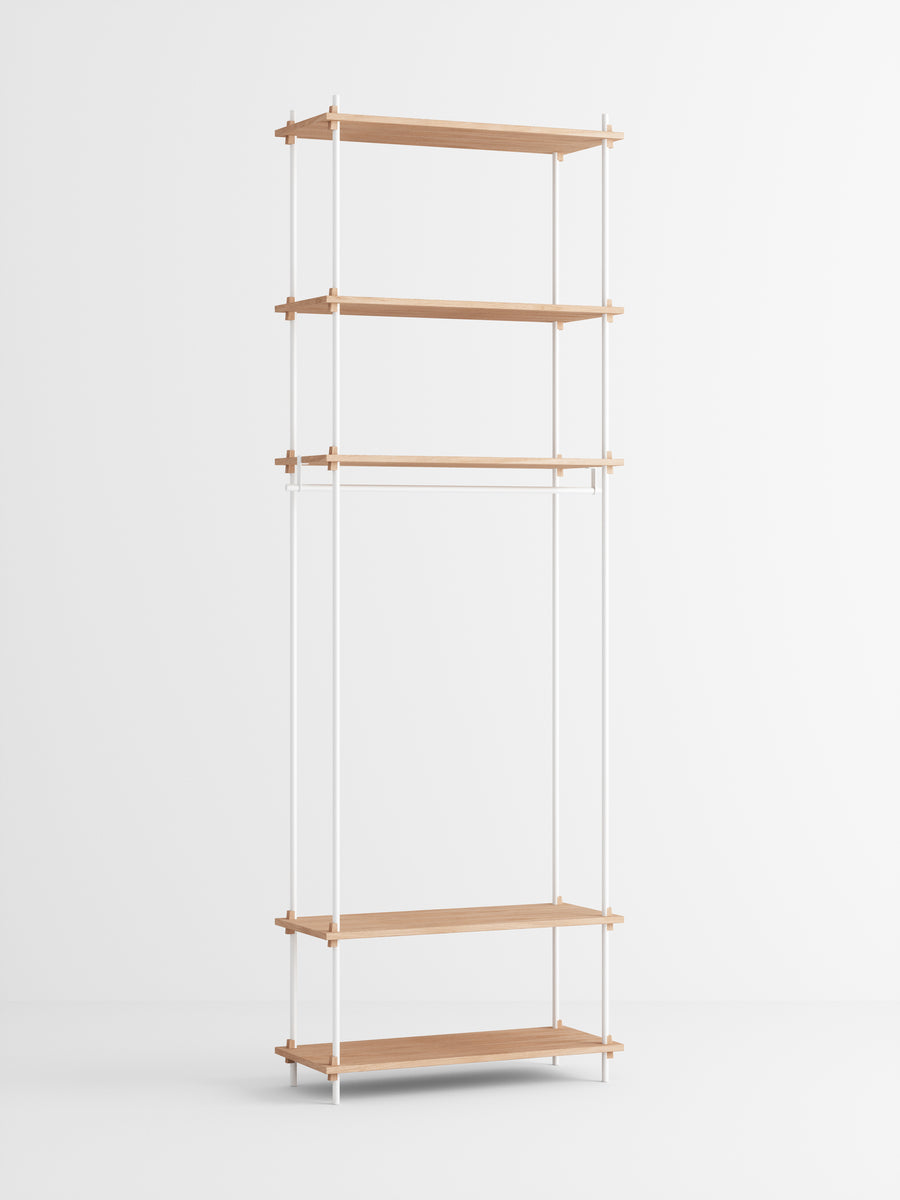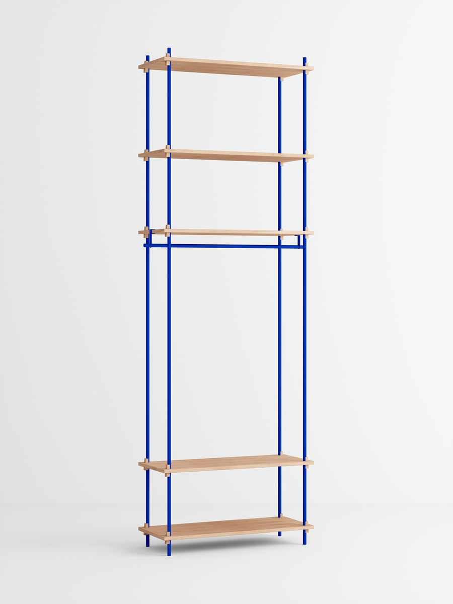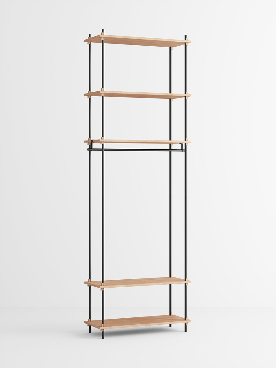 The MOEBE Shelving System is a modular piece of furniture that gives you full freedom to build your own piece of furniture. Build as tall as you like, as wide as you like, around corners, or even span different levels. Add function by implementing a wardrobe, desk or cabinet. Place it across a wall or use it free standing. From workspaces to room dividers, bookshelves to wardrobes; the MOEBE Shelving System can be used in a variety of ways, for a variety of functions.