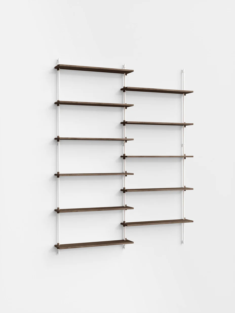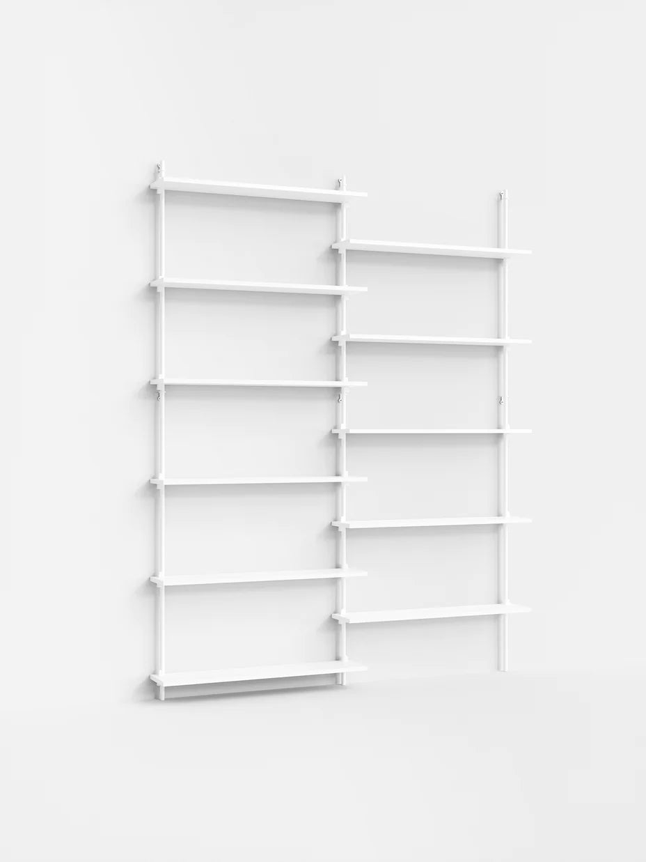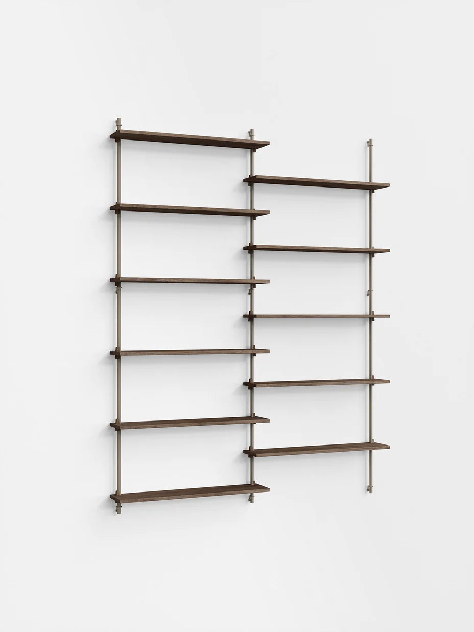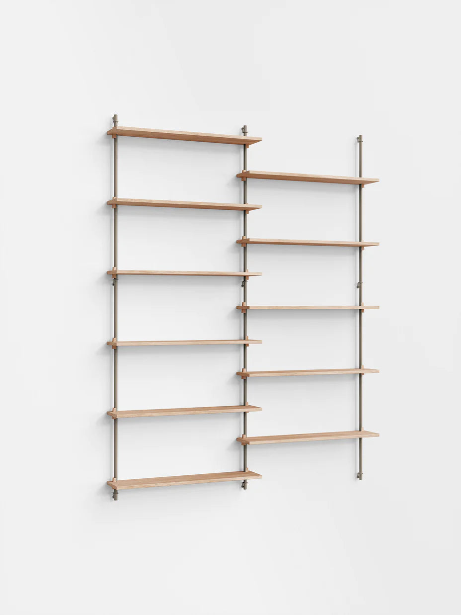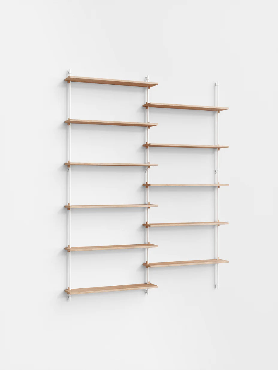 The MOEBE Wall Shelving System is designed for your narrow hallway, spacious living room and small kitchen corner. Build as tall and wide as you like. Easily adjust the shelves to any height. Suitable for any space and any wall.Because the Wall Shelving System is entirely built from individual parts made from high quality sustainable materials, it is highly customizable and can be built according to your needs. This also means that its a very durable piece of furniture. You can easily replace or add parts without having to replace a whole piece of furniture and it can be taken apart very easily, making it easy to move or store. The Wall Shelving System is designed to last a lifetime.