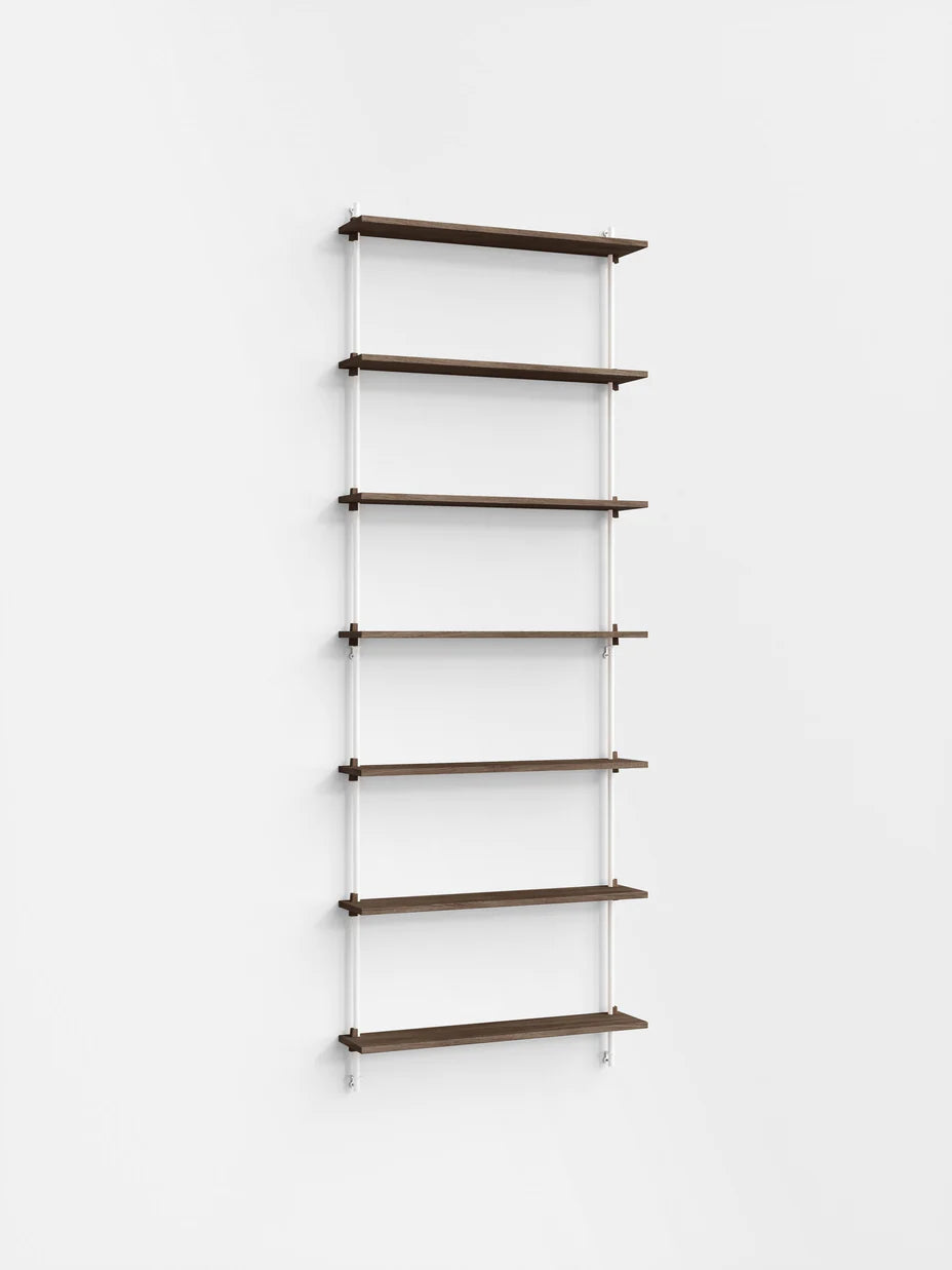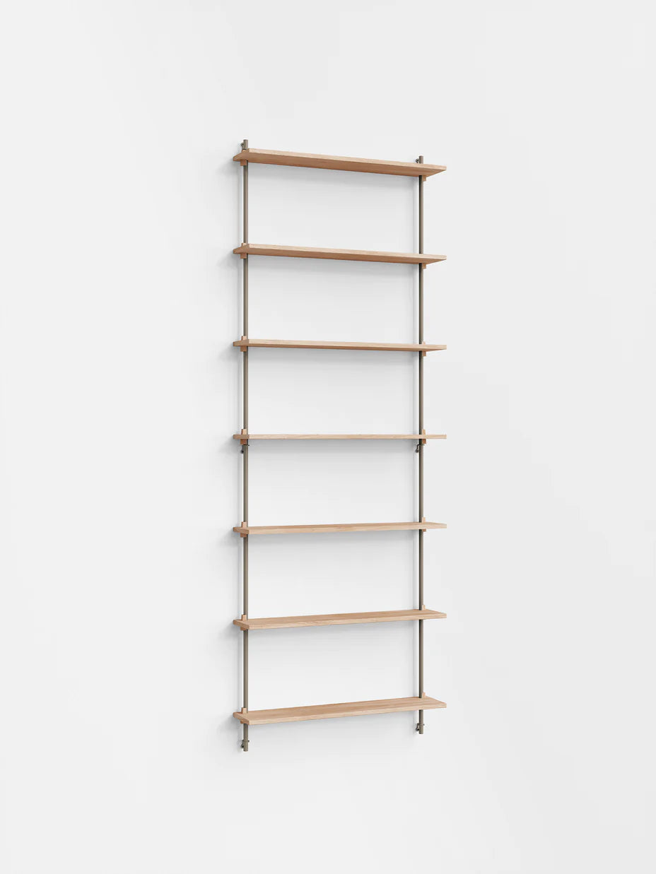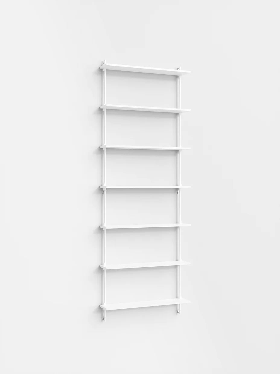 The MOEBE Wall Shelving System is designed for your narrow hallway, spacious living room and small kitchen corner. Build as tall and wide as you like. Easily adjust the shelves to any height. Suitable for any space and any wall.Because the Wall Shelving System is entirely built from individual parts made from high quality sustainable materials, it is highly customizable and can be built according to your needs. This also means that its a very durable piece of furniture. You can easily replace or add parts without having to replace a whole piece of furniture and it can be taken apart very easily, making it easy to move or store. The Wall Shelving System is designed to last a lifetime.