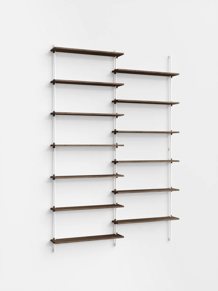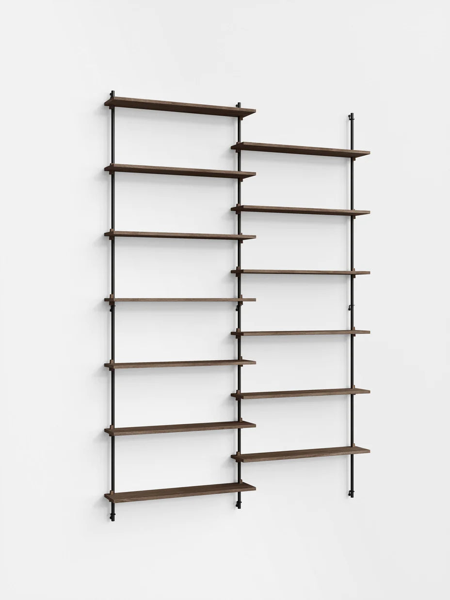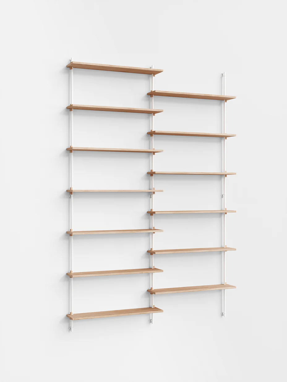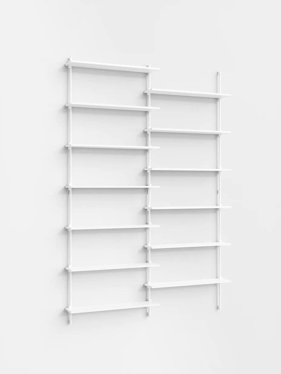 The MOEBE Wall Shelving System is designed for your narrow hallway, spacious living room and small kitchen corner. Build as tall and wide as you like. Easily adjust the shelves to any height. Suitable for any space and any wall.Because the Wall Shelving System is entirely built from individual parts made from high quality sustainable materials, it is highly customizable and can be built according to your needs. This also means that its a very durable piece of furniture. You can easily replace or add parts without having to replace a whole piece of furniture and it can be taken apart very easily, making it easy to move or store. The Wall Shelving System is designed to last a lifetime.