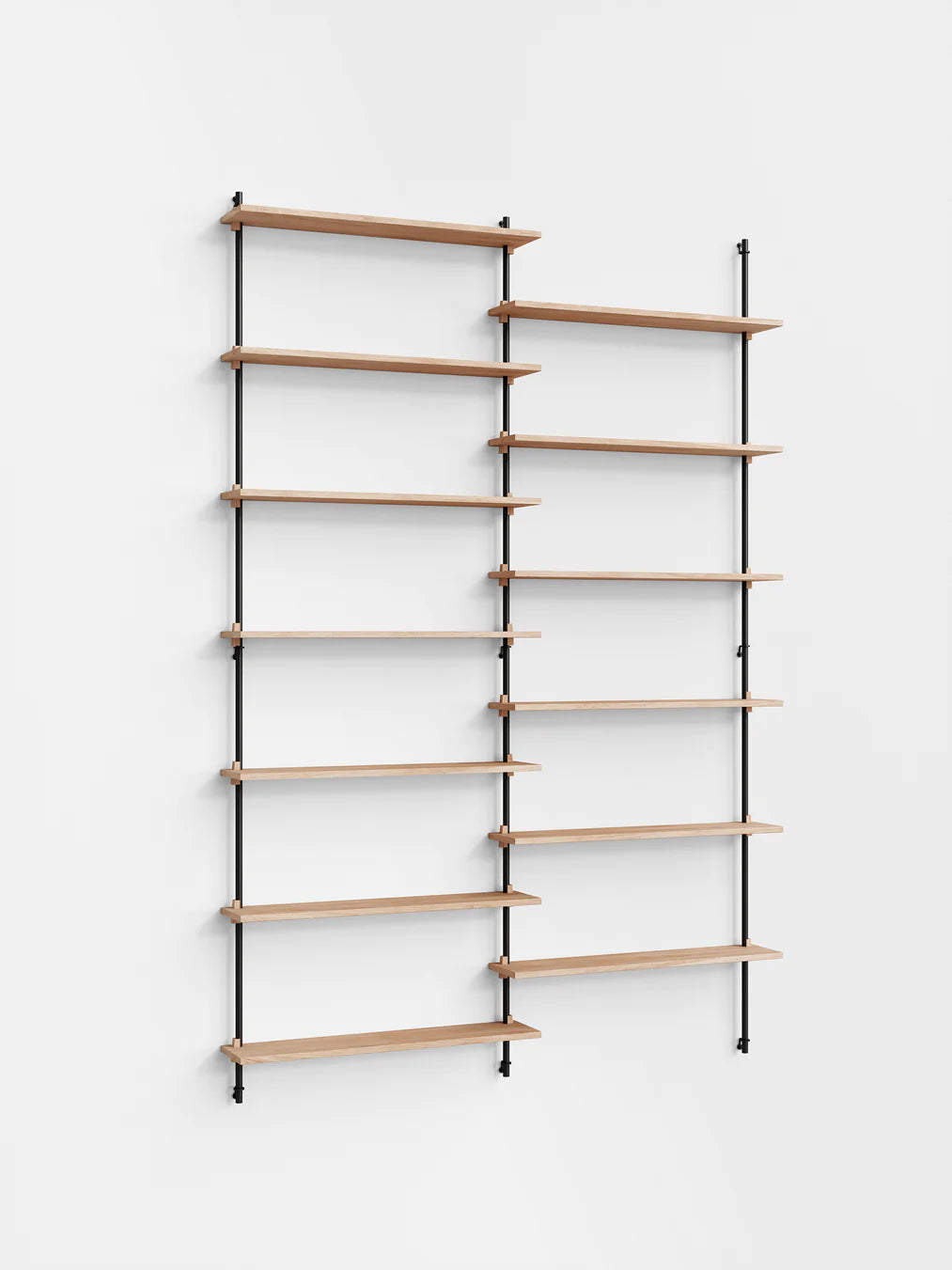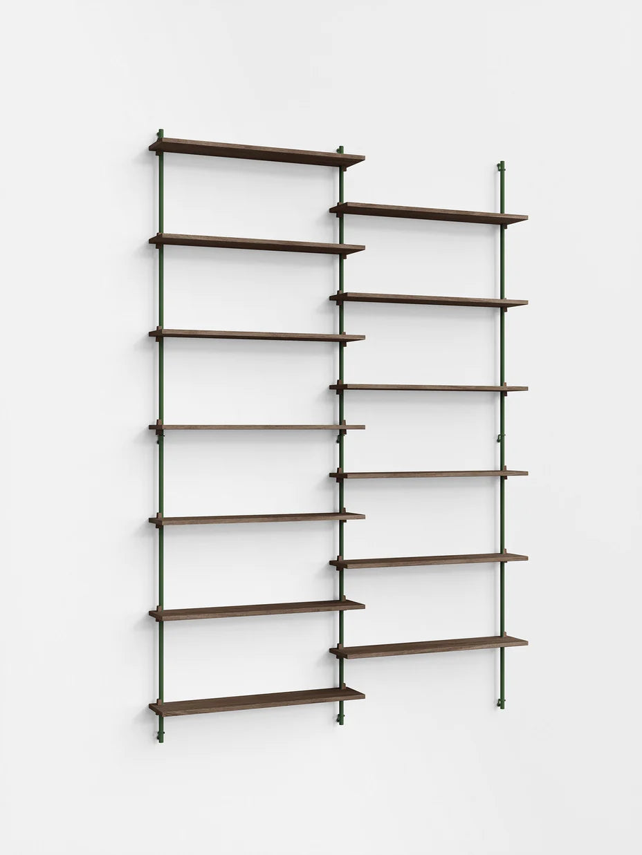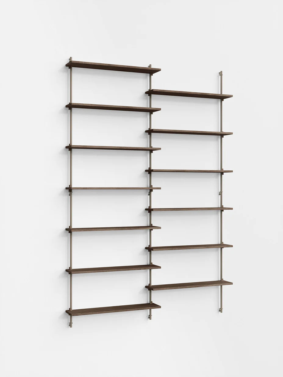 The MOEBE Wall Shelving System is designed for your narrow hallway, spacious living room and small kitchen corner. Build as tall and wide as you like. Easily adjust the shelves to any height. Suitable for any space and any wall.Because the Wall Shelving System is entirely built from individual parts made from high quality sustainable materials, it is highly customizable and can be built according to your needs. This also means that its a very durable piece of furniture. You can easily replace or add parts without having to replace a whole piece of furniture and it can be taken apart very easily, making it easy to move or store. The Wall Shelving System is designed to last a lifetime.