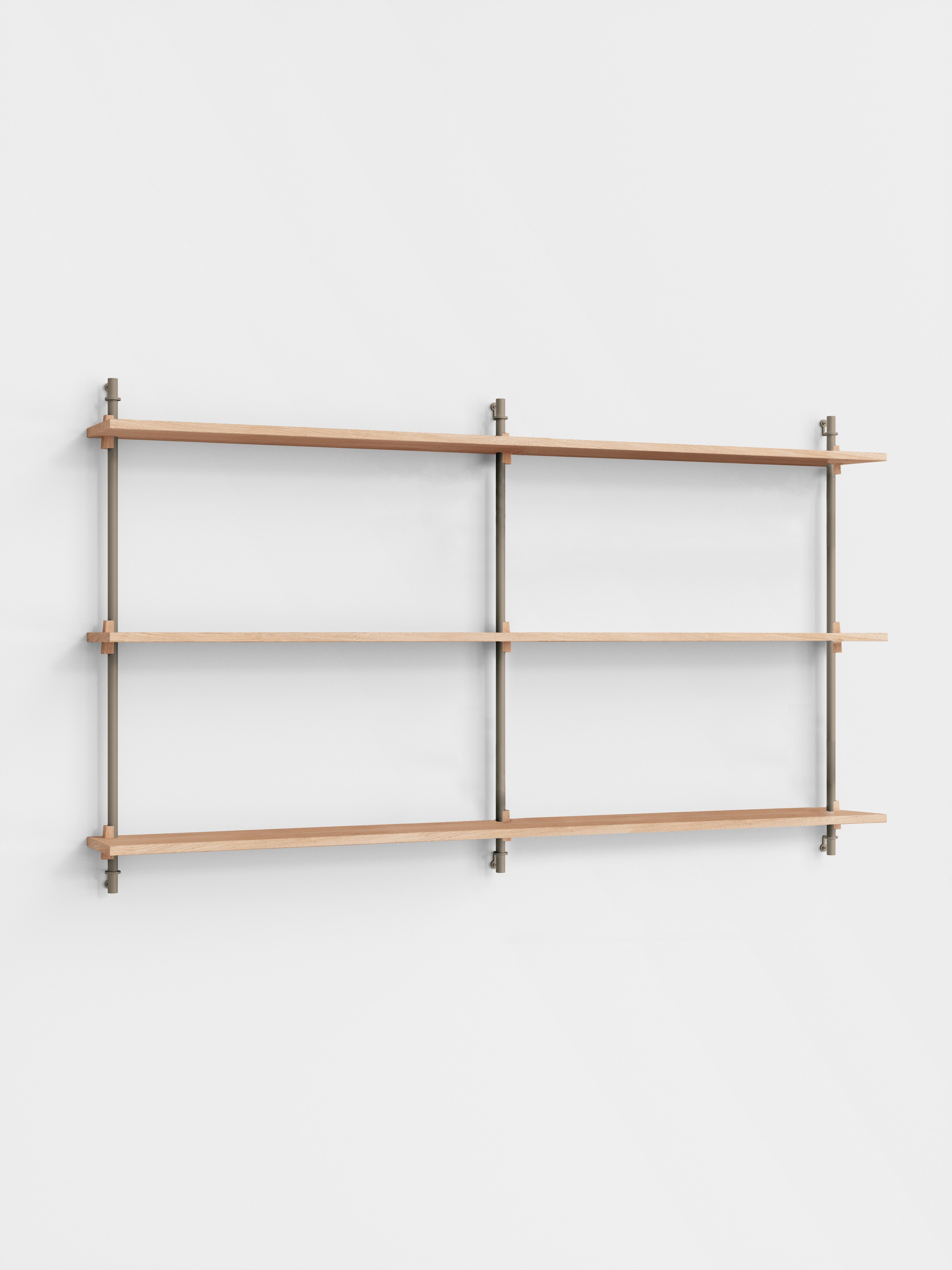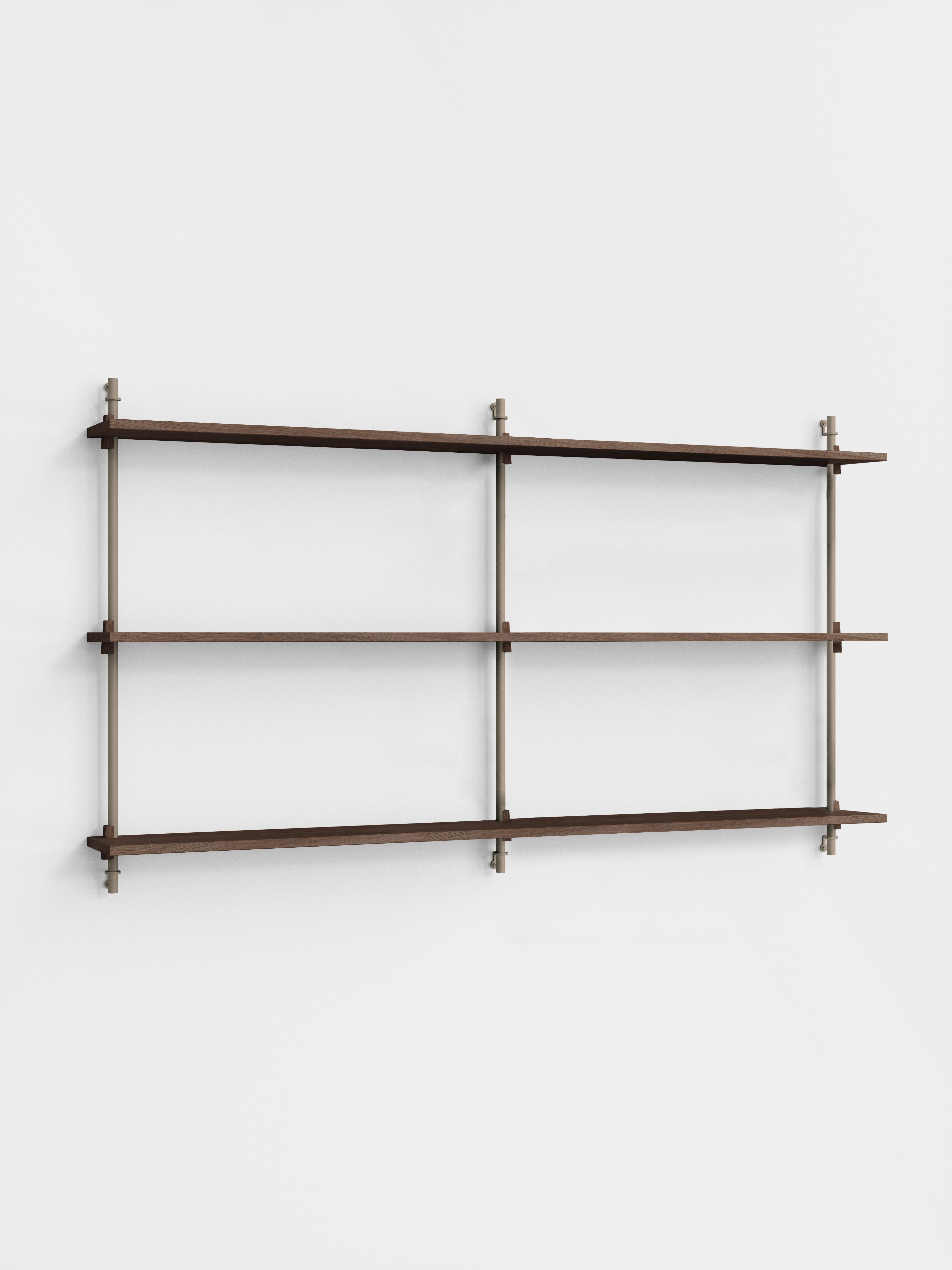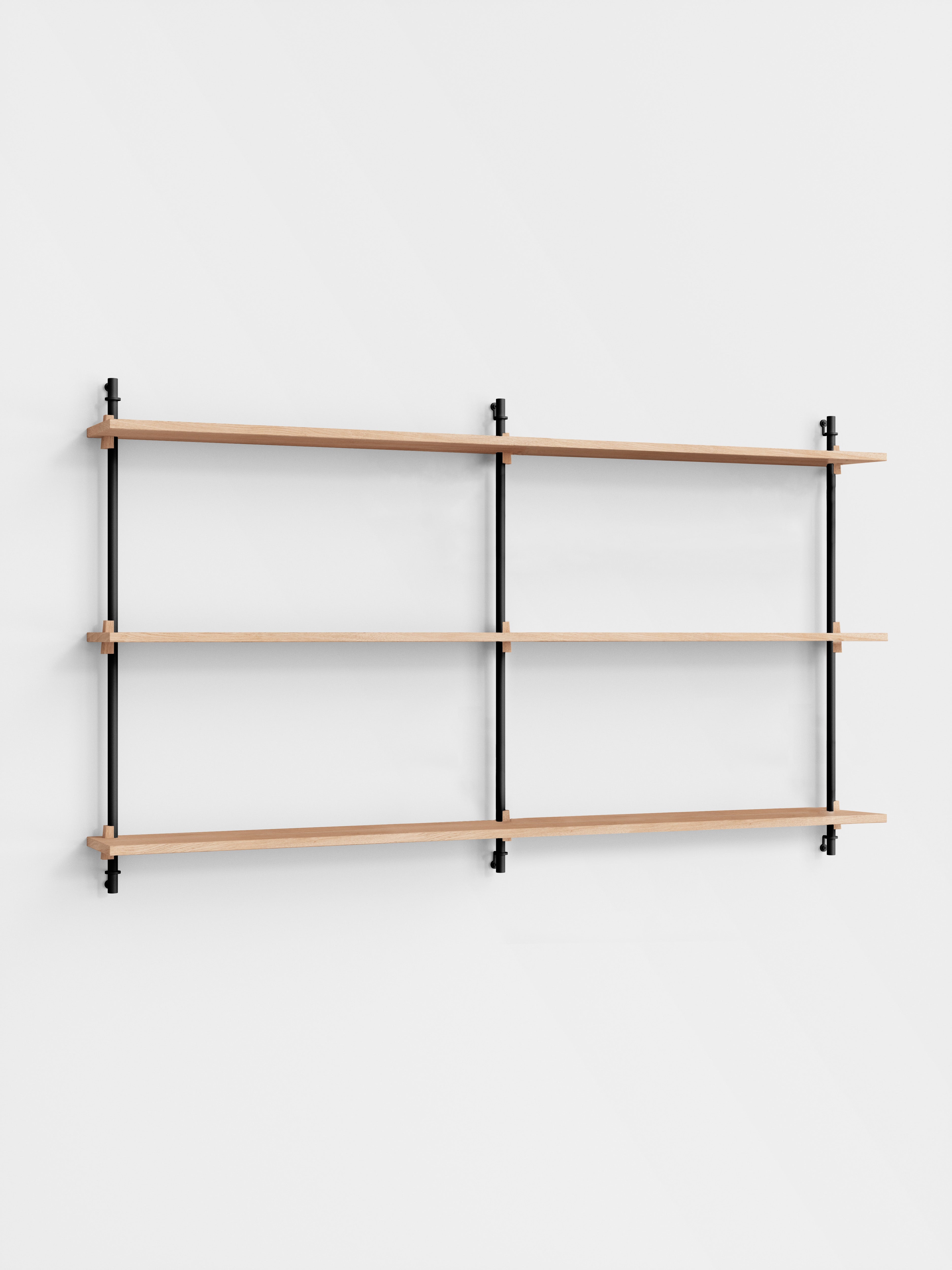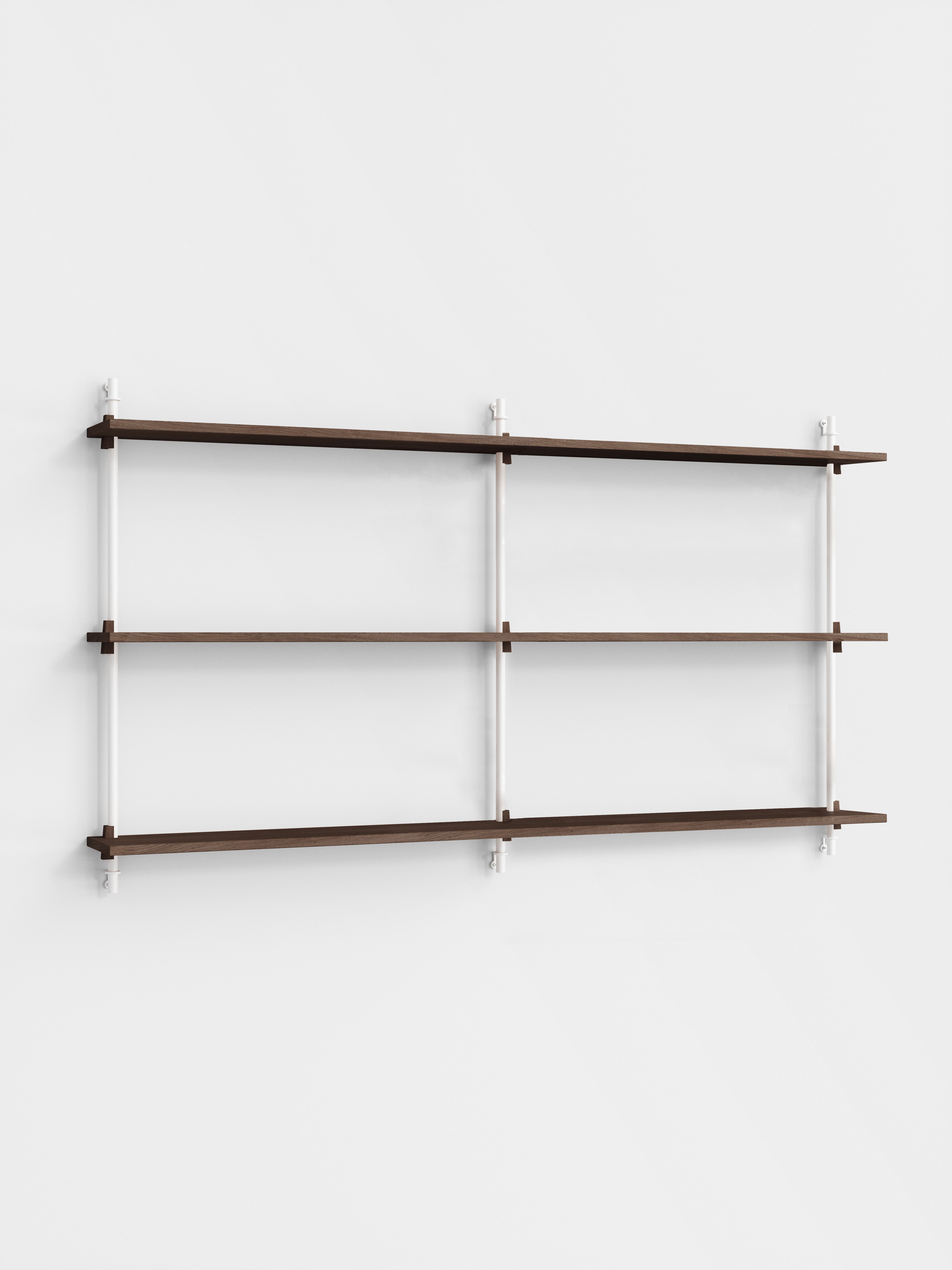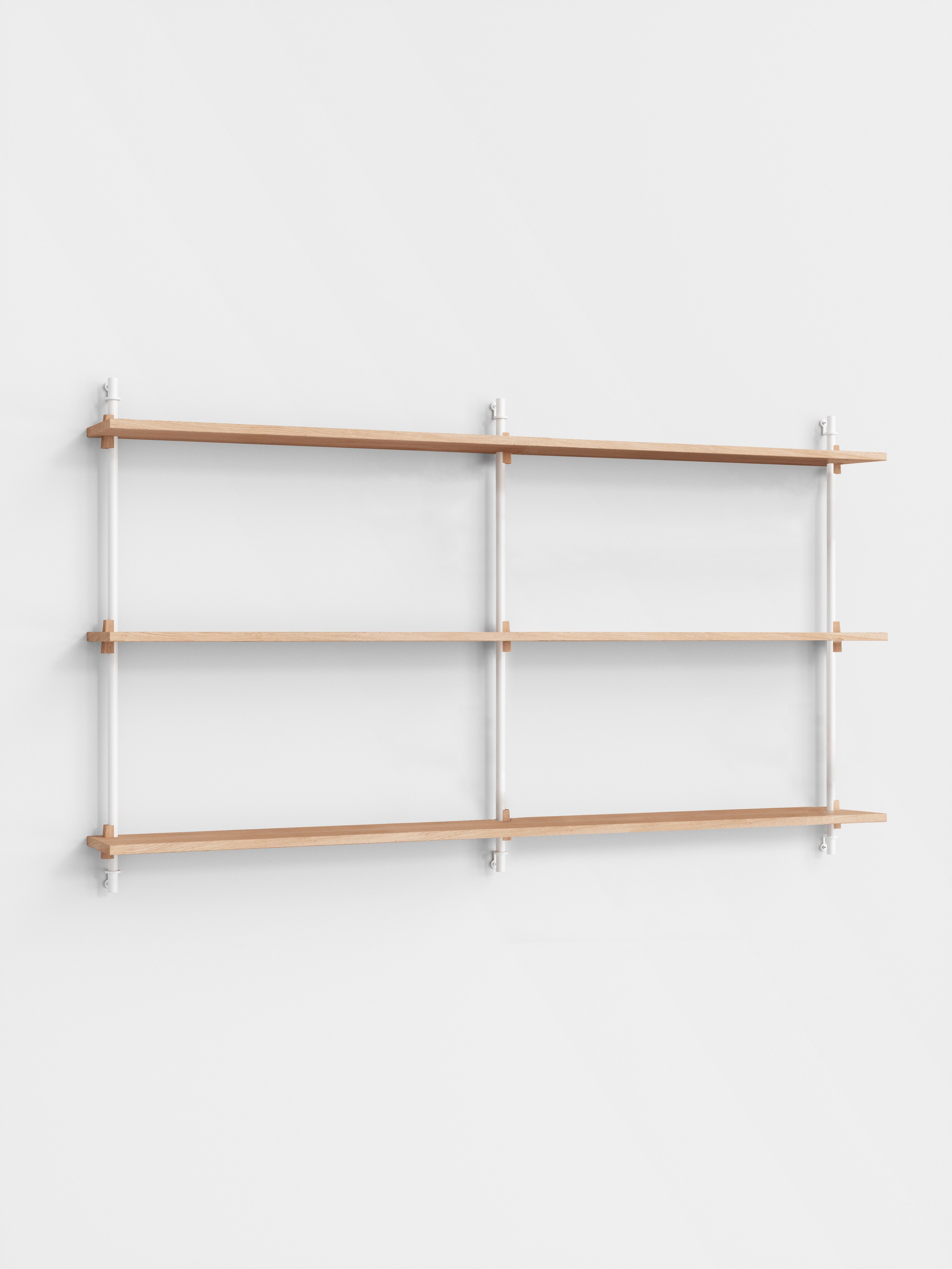 The MOEBE Wall Shelving System is designed for your narrow hallway, spacious living room and small kitchen corner. Build as tall and wide as you like. Easily adjust the shelves to any height. Suitable for any space and any wall.Because the Wall Shelving System is entirely built from individual parts made from high quality sustainable materials, it is highly customizable and can be built according to your needs. This also means that its a very durable piece of furniture. You can easily replace or add parts without having to replace a whole piece of furniture and it can be taken apart very easily, making it easy to move or store. The Wall Shelving System is designed to last a lifetime.