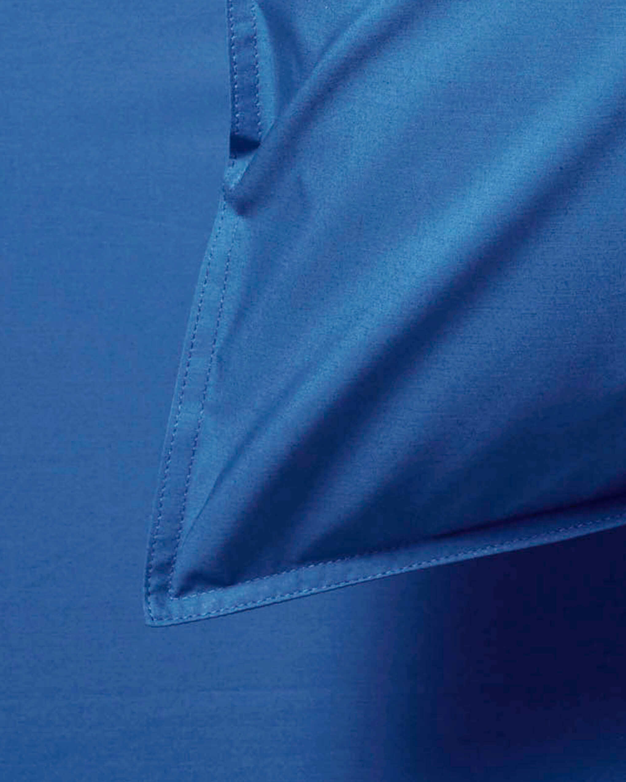 Organic percale cotton 300, Thread Count (TC), long fiber cotton, twin stitch. Ton-sur-ton embroidered logo. Hotel closure with flap.