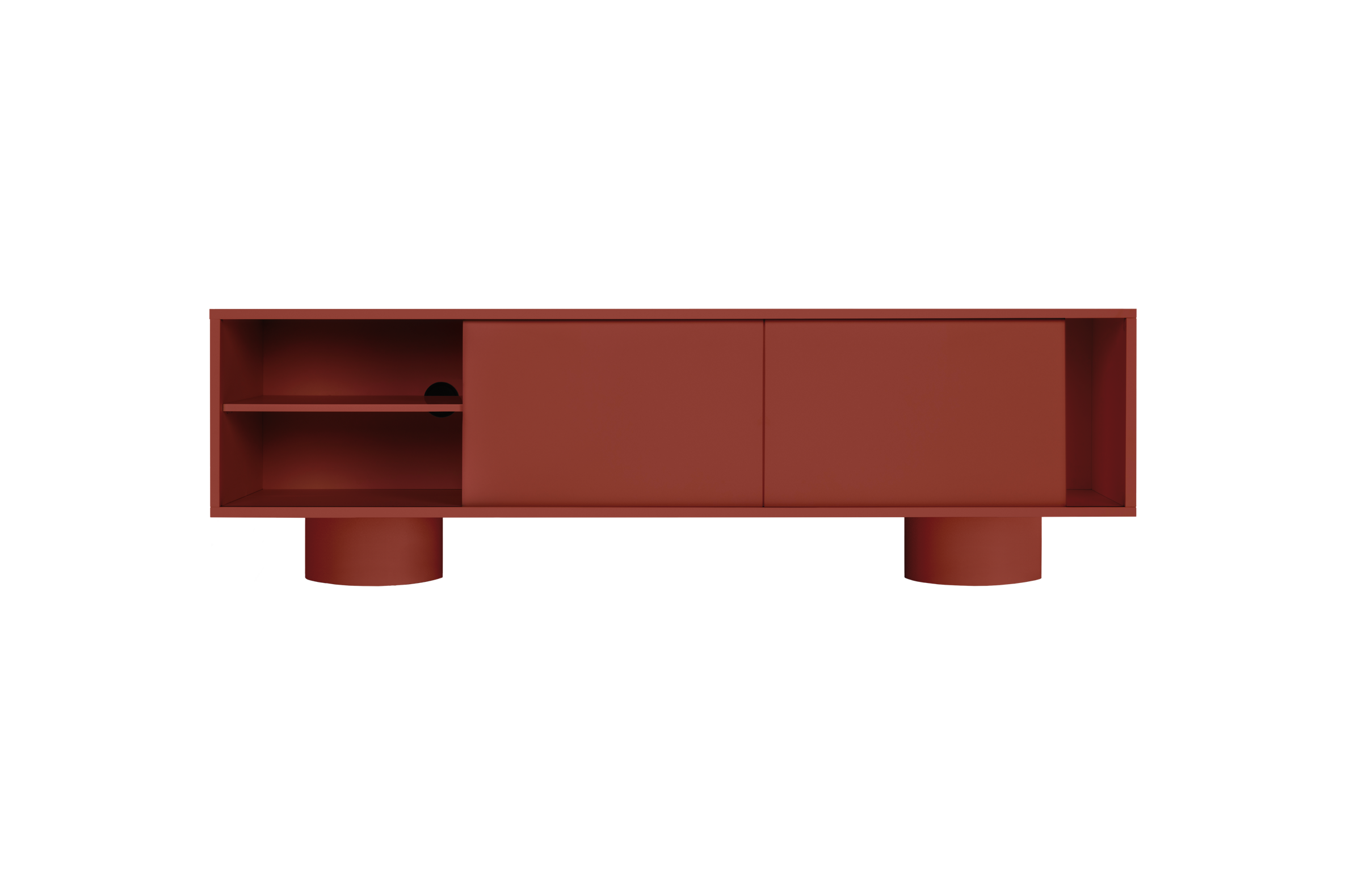 Introducing Taro - a spacious TV stand offering its storage space for your media devices, records and other belongings. Taro's classic form is dynamized by rounded legs and sliding door, adding a refined look to various environments, from living rooms to offices.