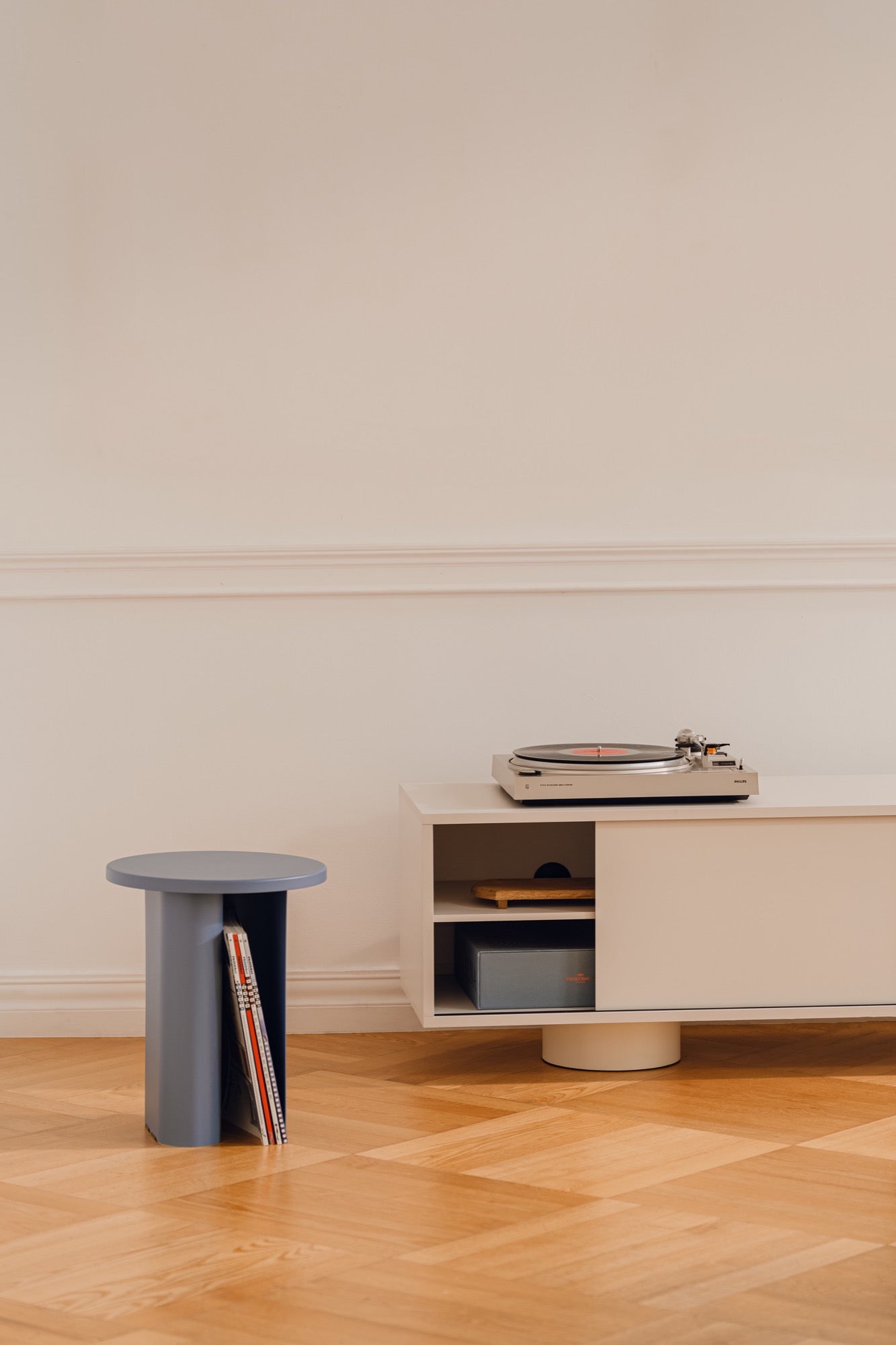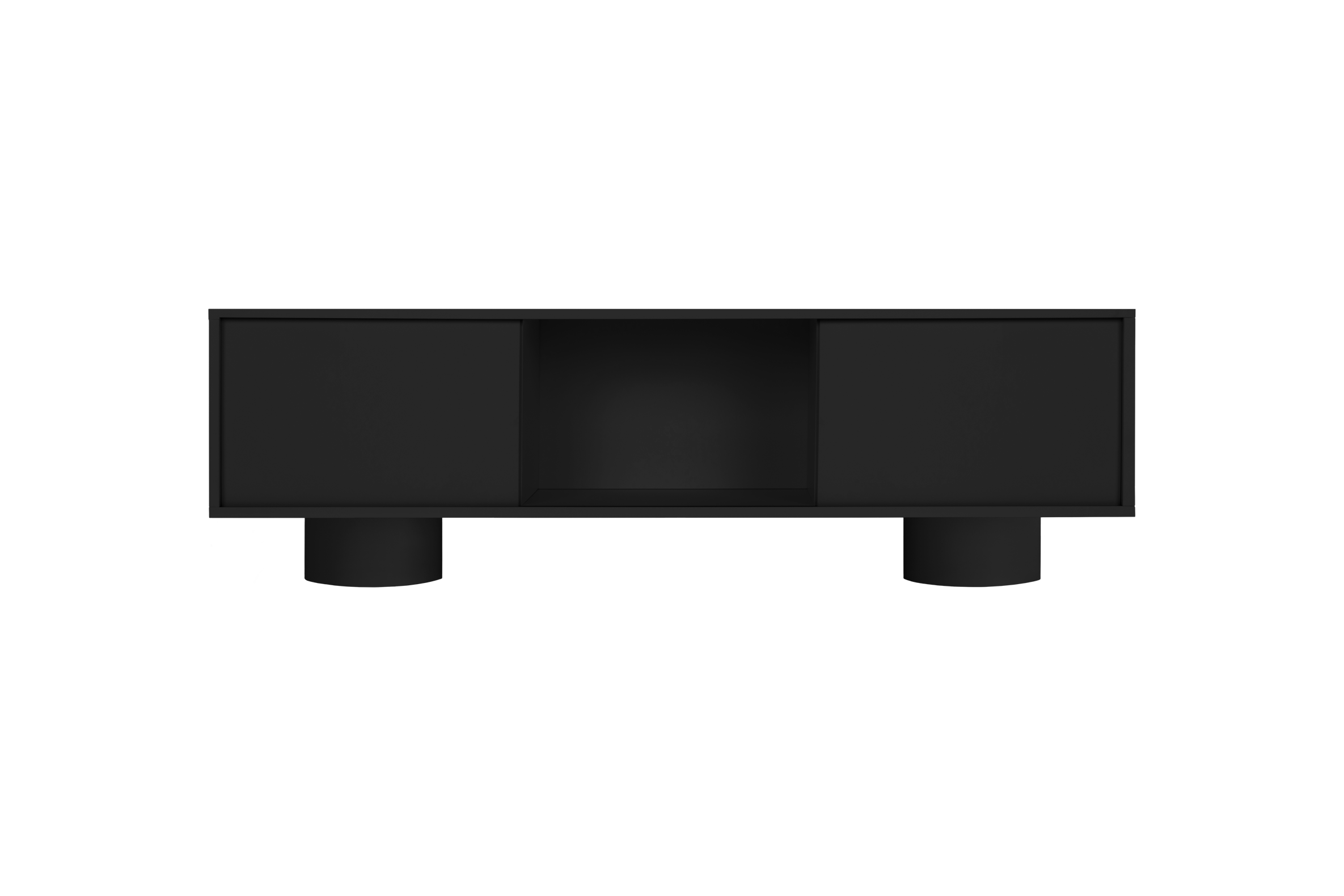 Introducing Taro - a spacious TV stand offering its storage space for your media devices, records and other belongings. Taro's classic form is dynamized by rounded legs and sliding door, adding a refined look to various environments, from living rooms to offices.