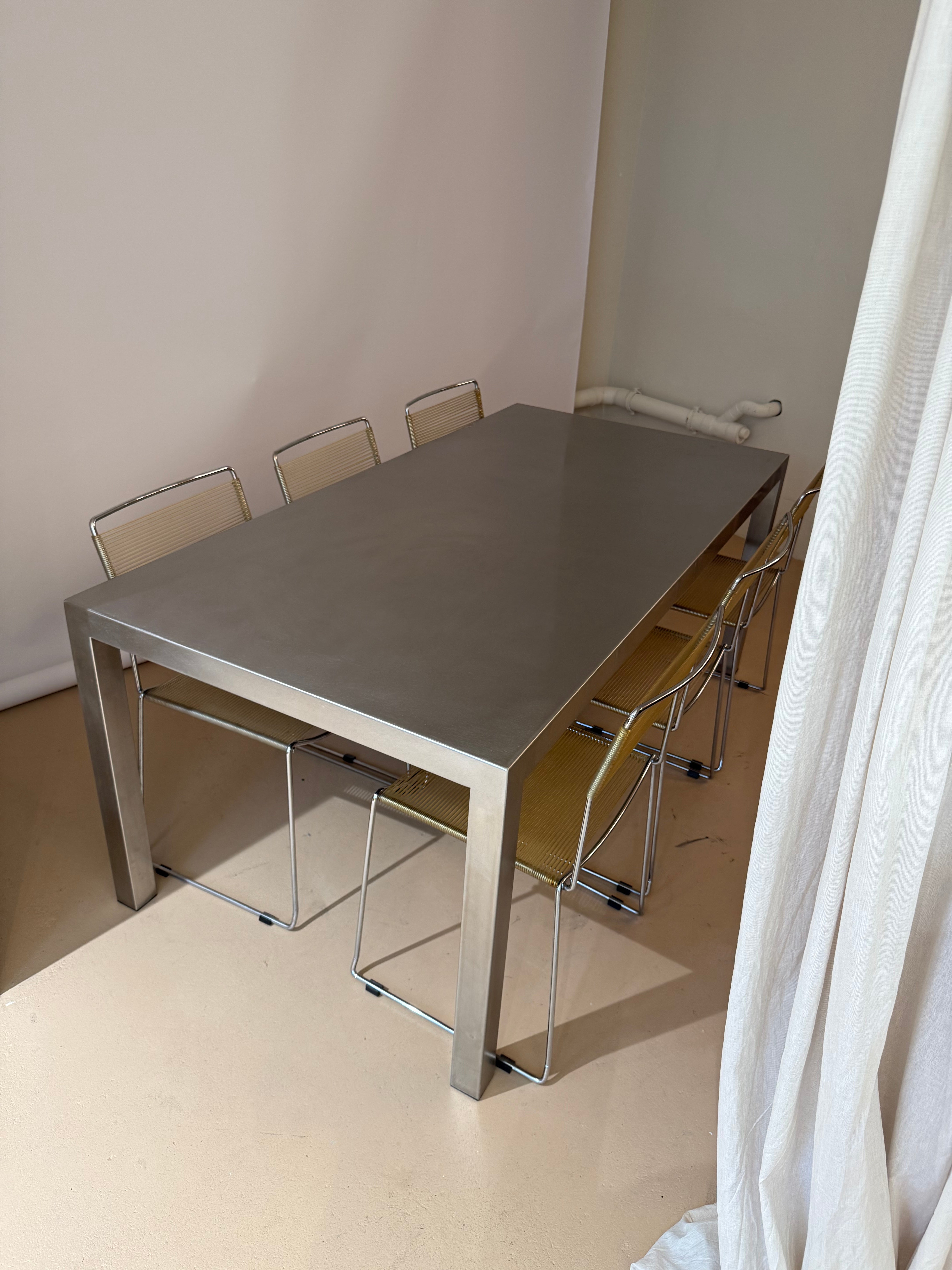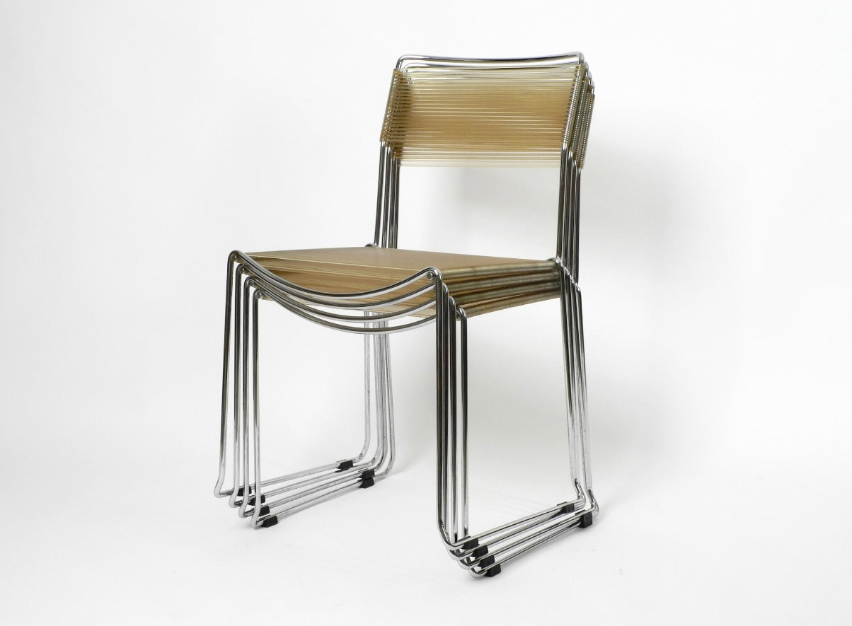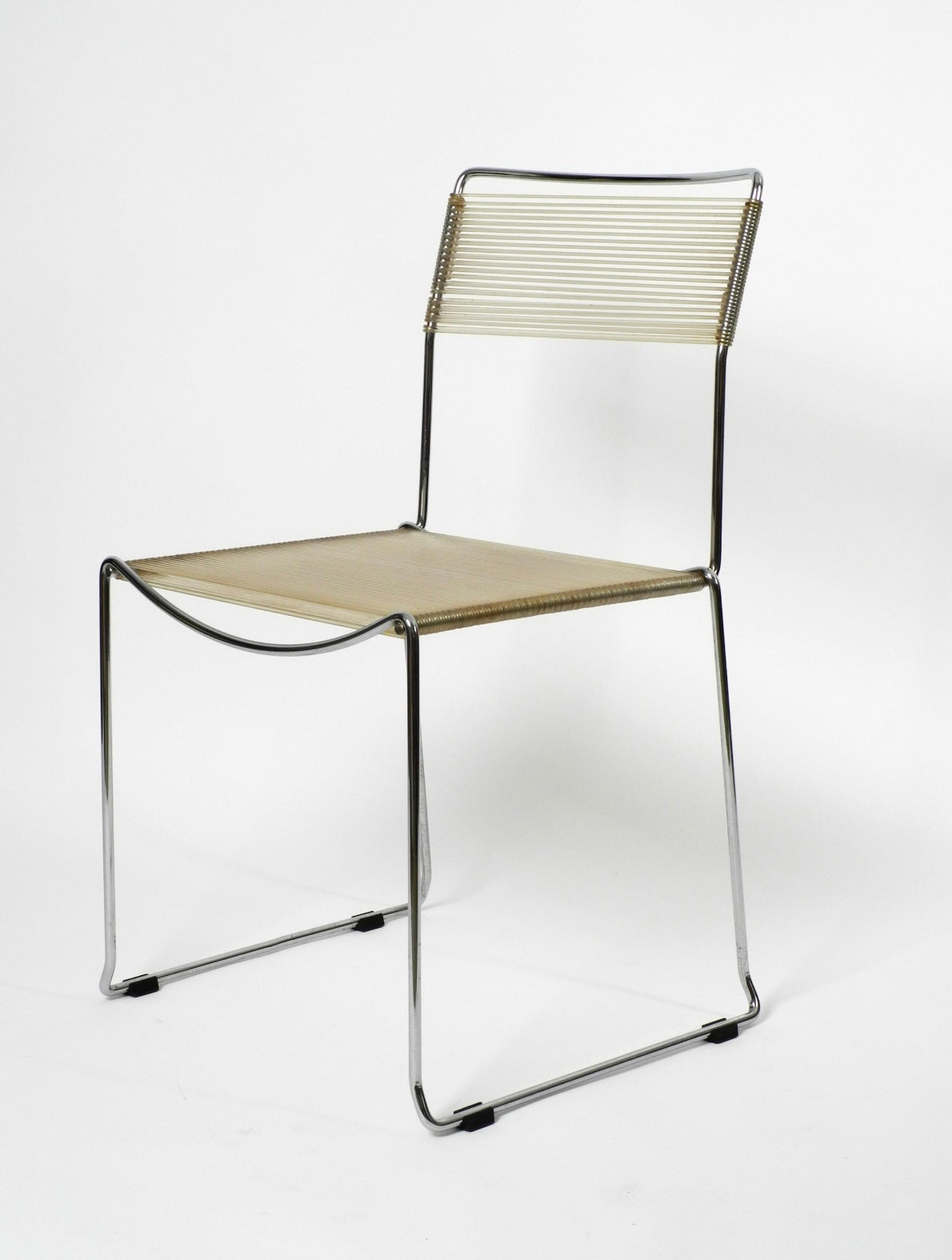 Vintage Italian design 'Jodi' Spaghetti chairs by Sintesi (1980s). Easy to confuse with the iconic spaghetti chairs by Giandomenico Belotti chairs produced for Alias / Fly line. The chairs have a chrome steel frame and transparent PVC cord seats. The seats are still in very good vintage condition.