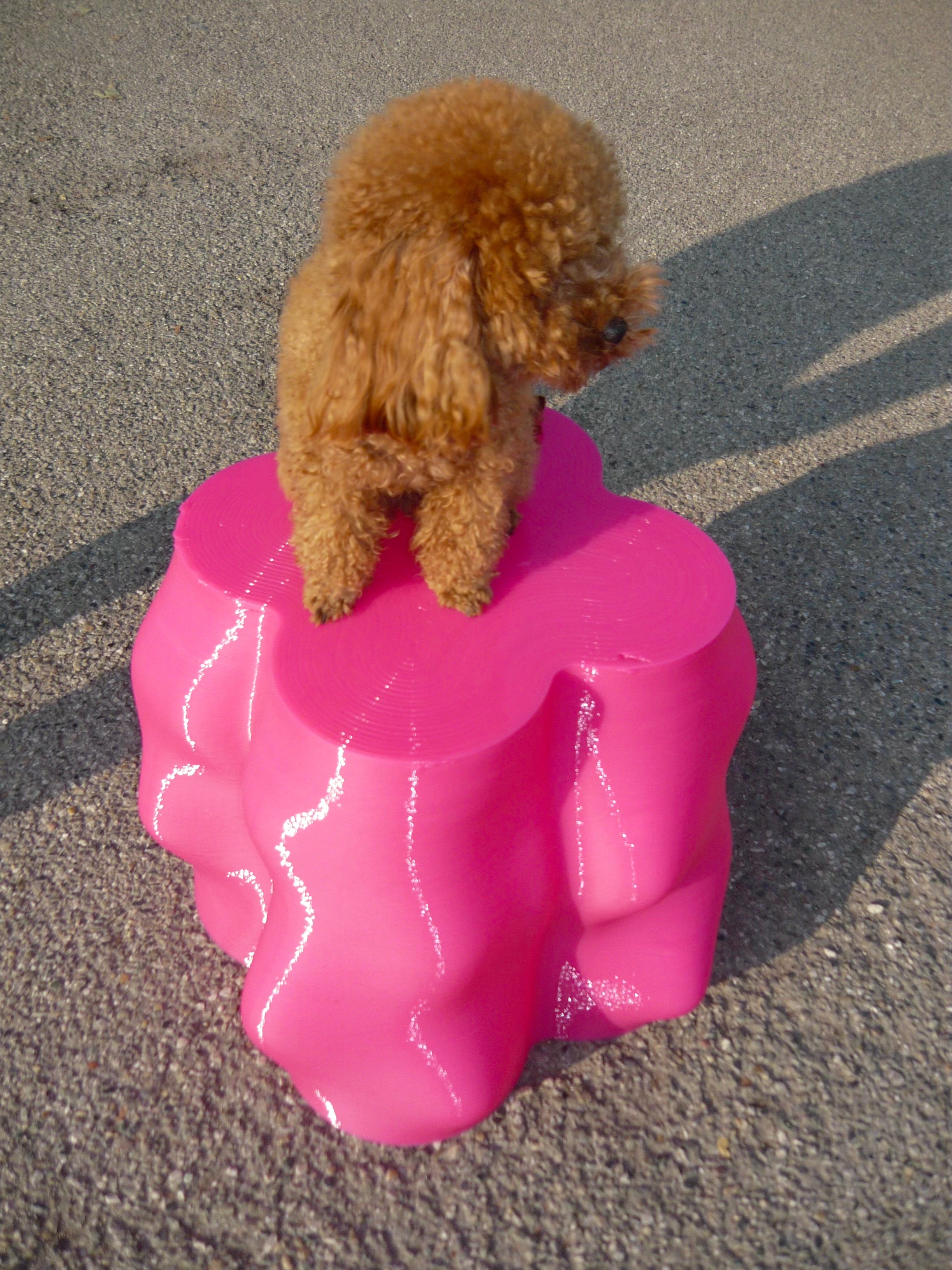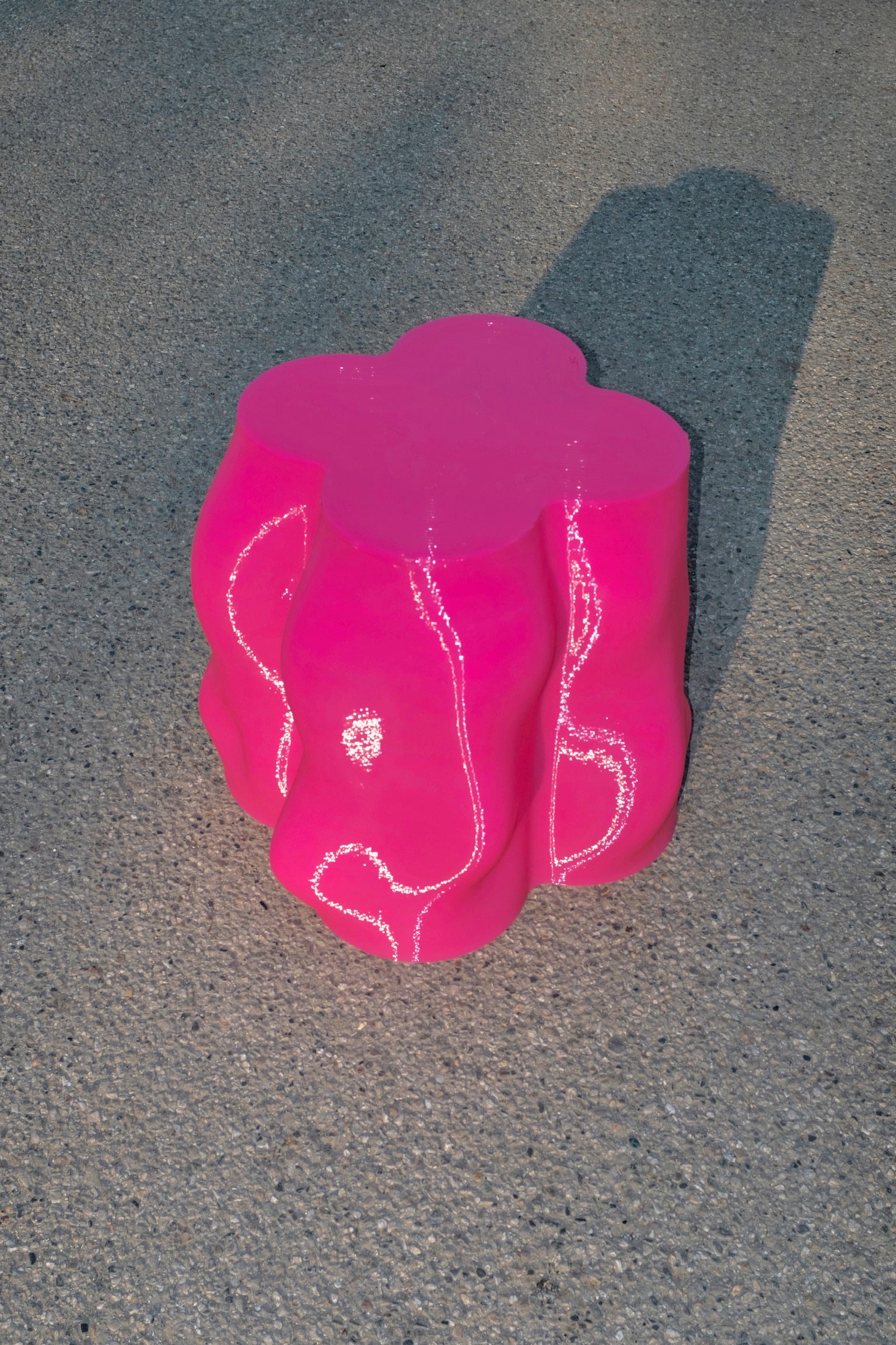 Crafted from plant-based plastic, this piece features an organic texture that comes alive in sunlight. Versatile and eco-friendly, it's a practical addition to any space, serving both as a comfortable seat and a functional side table.