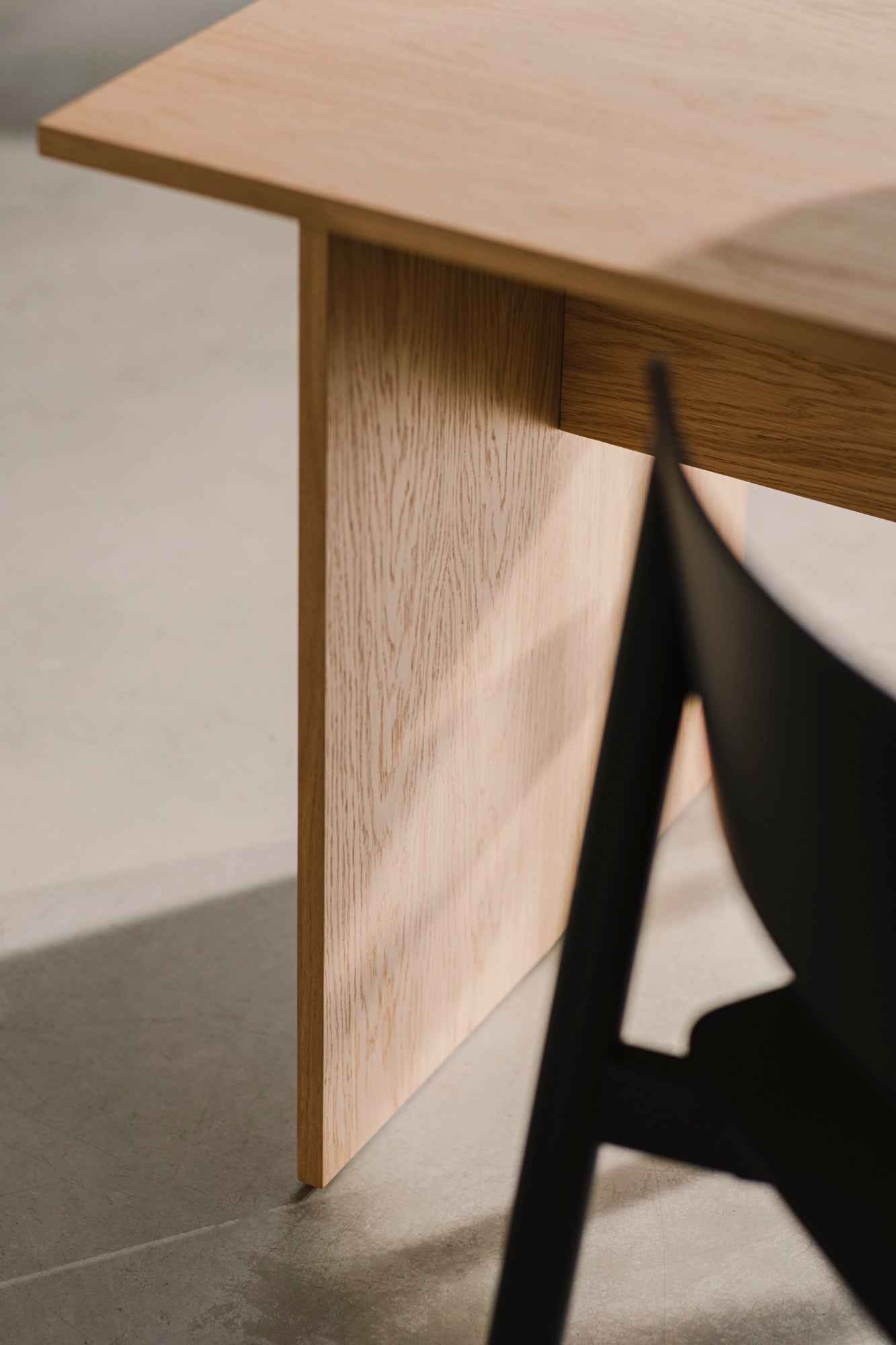 Say hi to Hett Table - an exquisitely minimal piece, useful as a dining room table or as a spacious office desk. Thanks to the carefully balanced proportions and pleasant to touch veneer structure, Hett brings serene atmosphere and visual unity to every tasteful dining room, regardless of its style. Matches perfectly with the Hett bench.