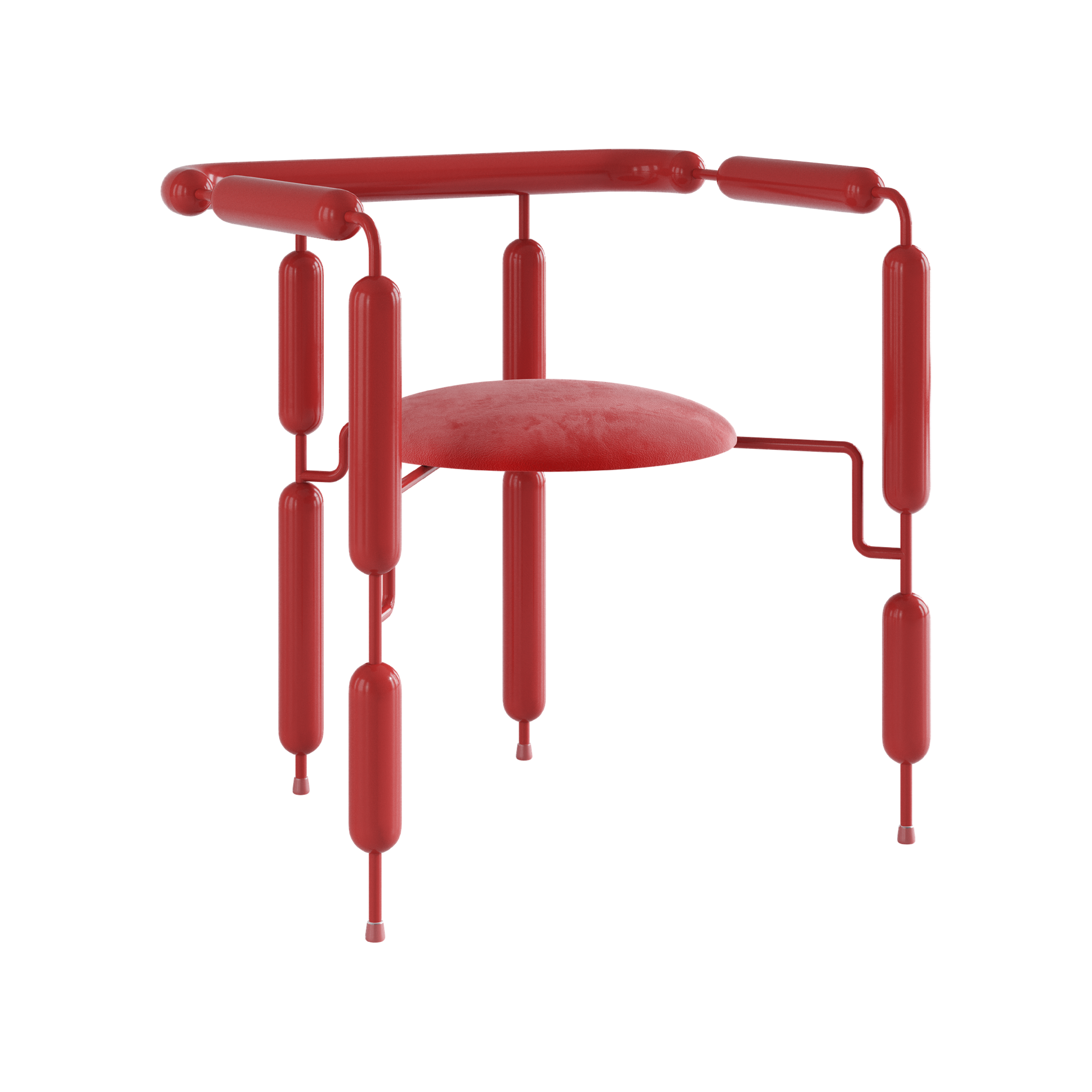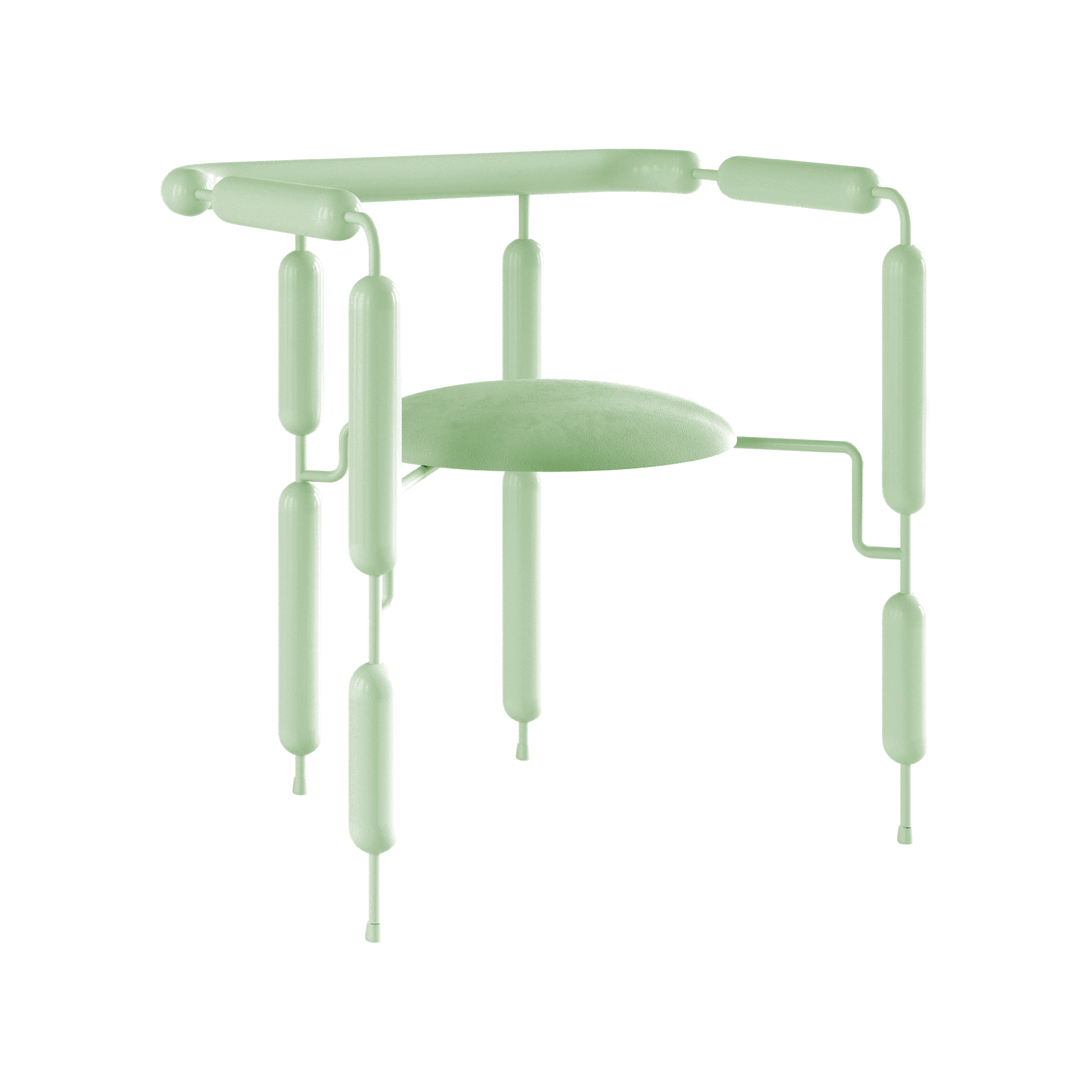 The Poodle is a steel armchair with a round velvet upholstered seat. It has definitely got its own personality and it’s impossible not to notice it immediately while entering the room. But as it doesn’t require as much care as its animal relative, it is easy company to keep. The Poodle was designed by Mati Sipiora in 2023, this is weirdo design at its best!