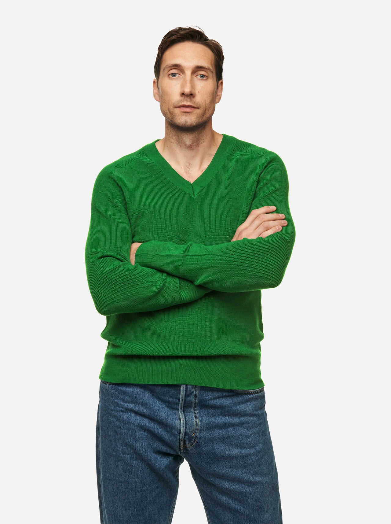 From couch to conference room and everywhere in between, The Merino V-neck feels as good as it looks. Crafted from non-mulesed Italian yarns, this smooth 100% responsible merino knit is machine washable, will hold its shape and will keep its neat look. Turtleneck, Crewneck or V-Neck - meet your soon-to-be unmissable classic.
