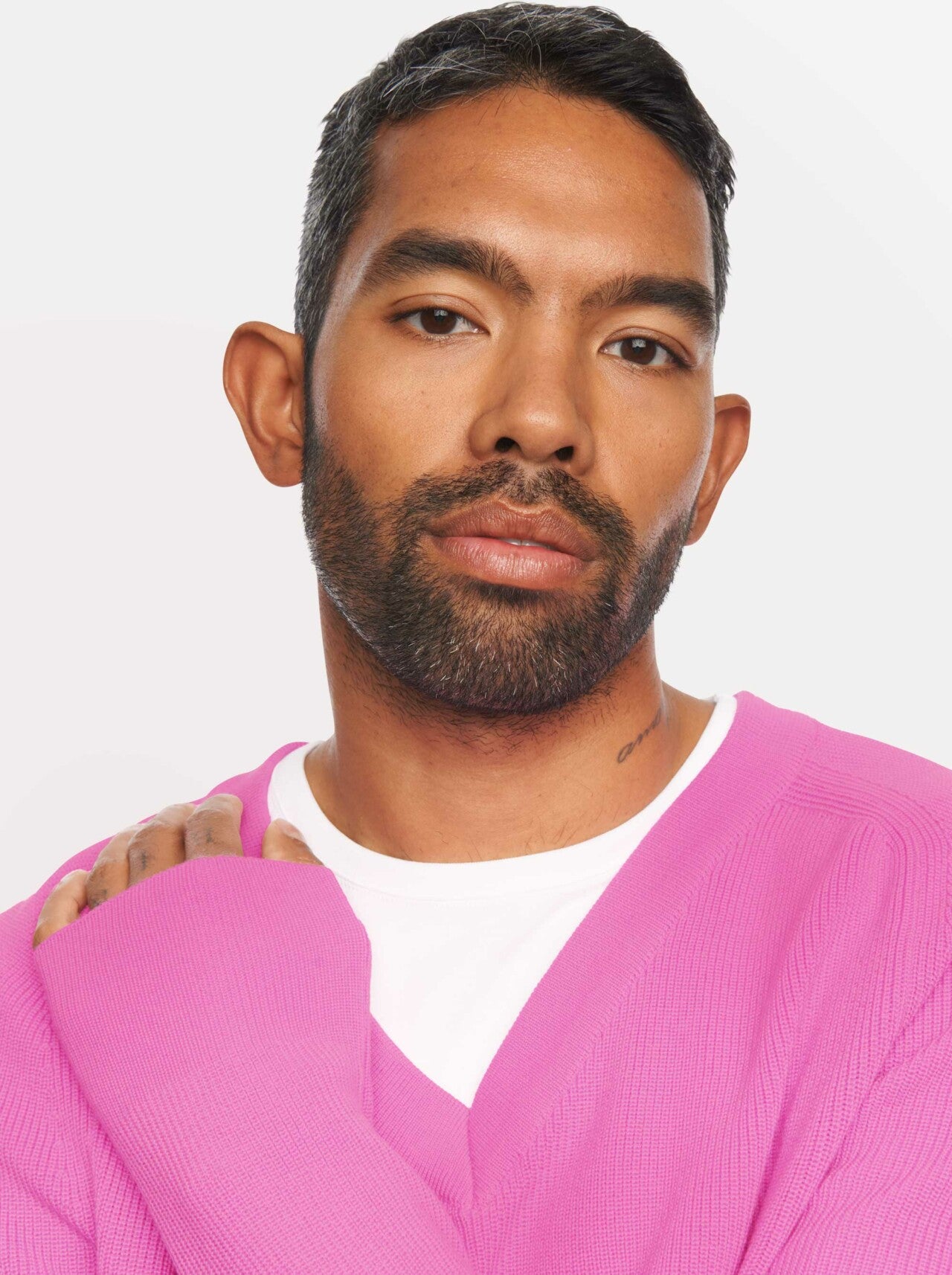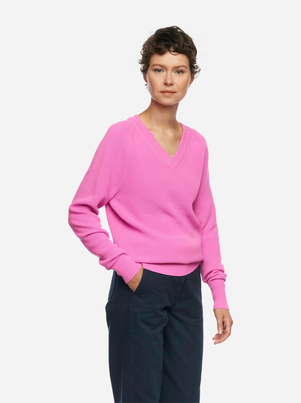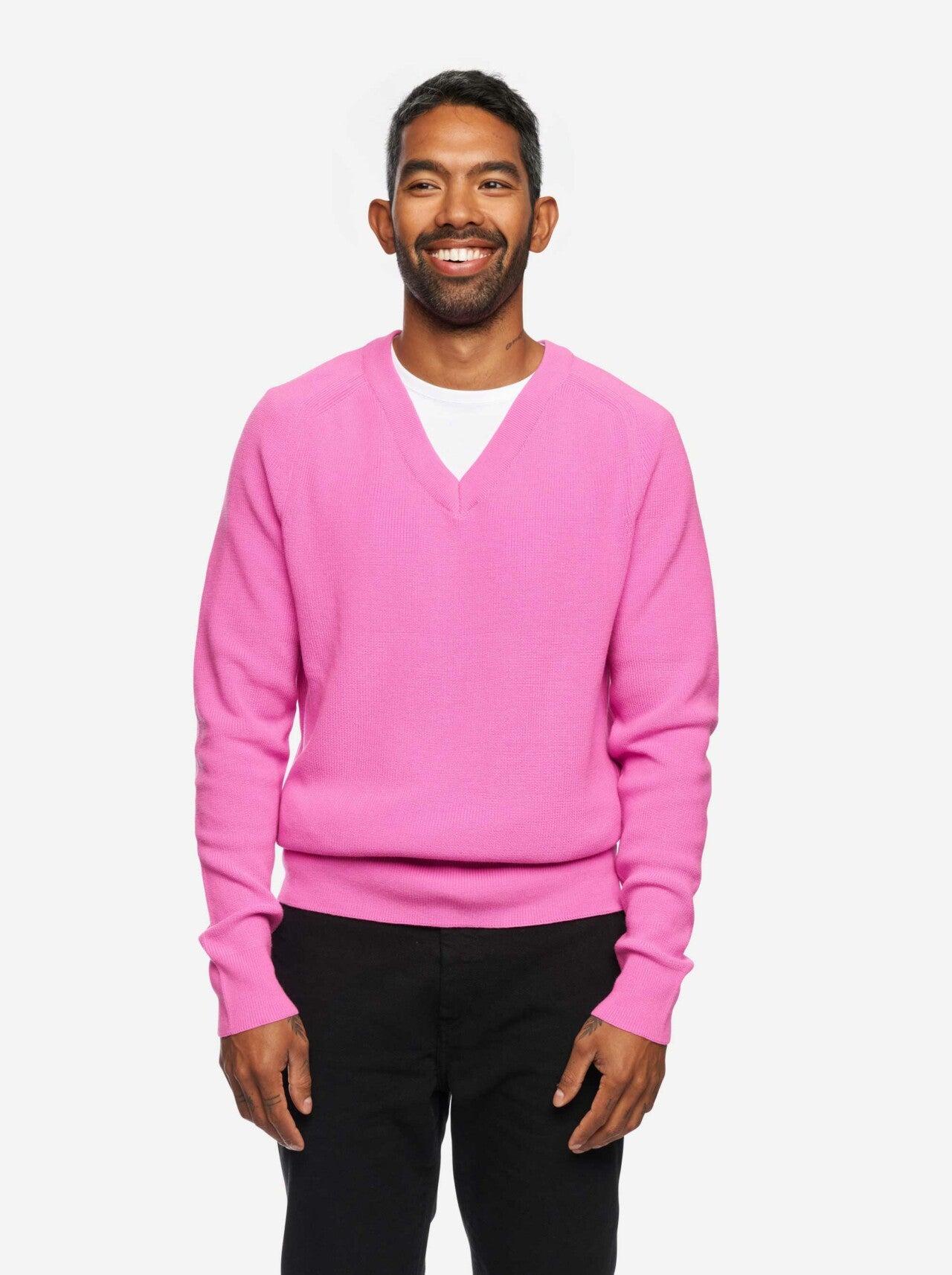 TEYM UNISEX MERINO V-NECK SWEATER (BRIGHT PINK)