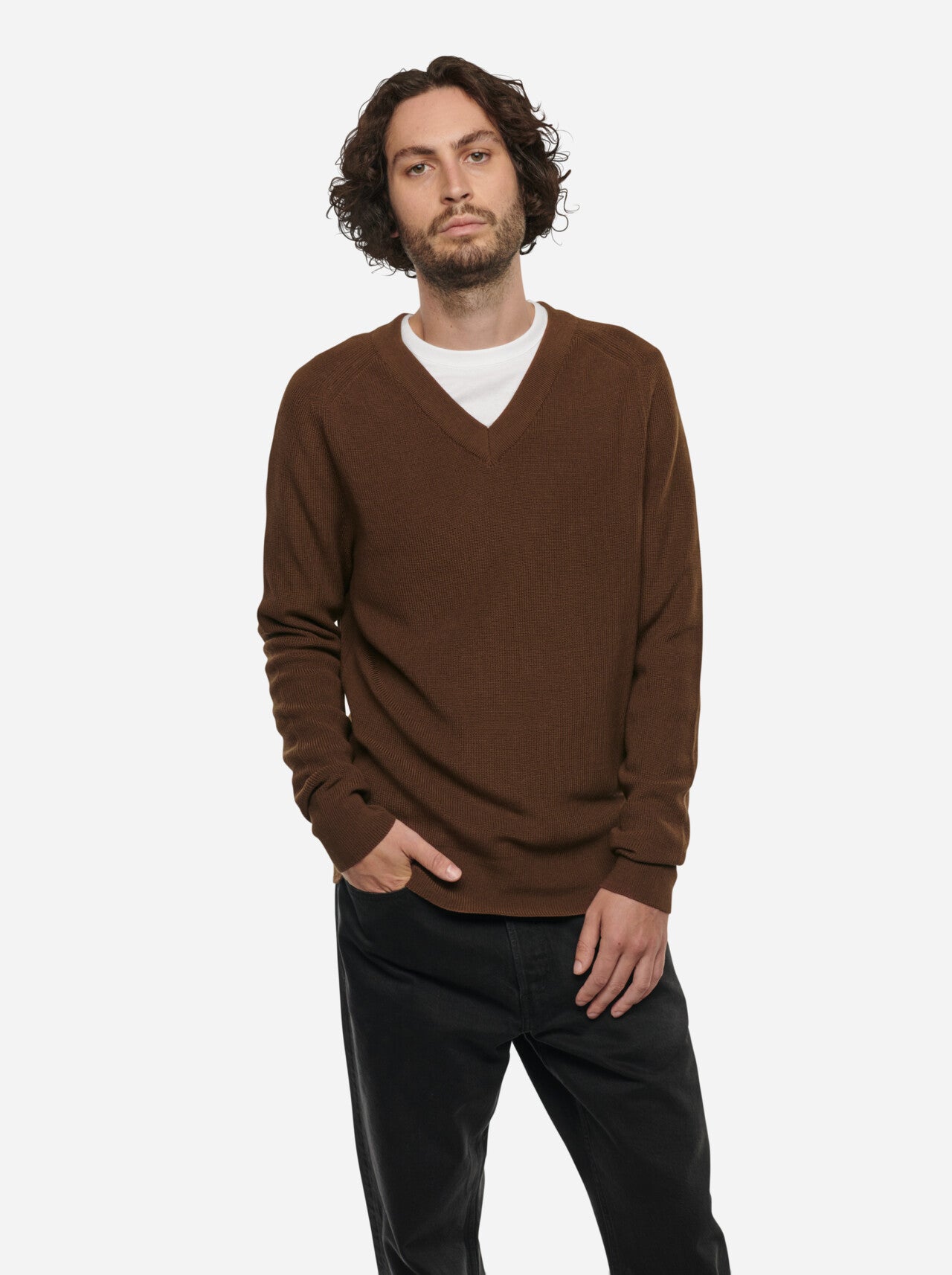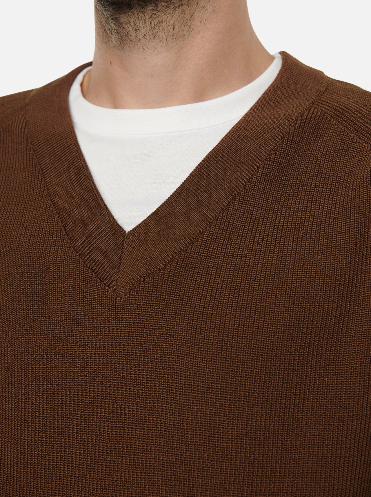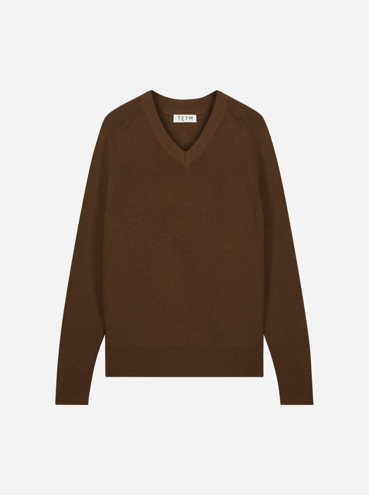 TEYM UNISEX MERINO V-NECK SWEATER (DARK BROWN)