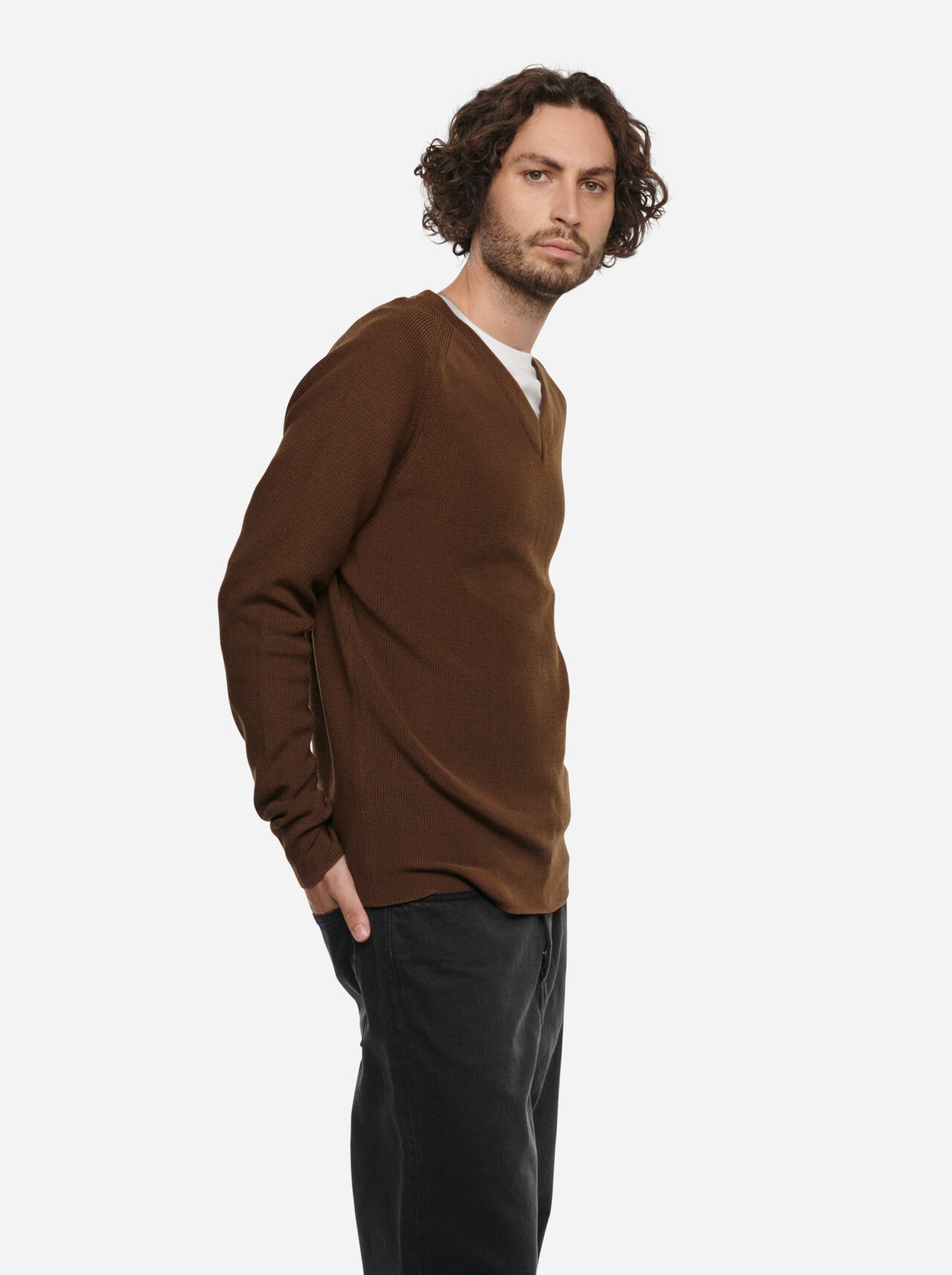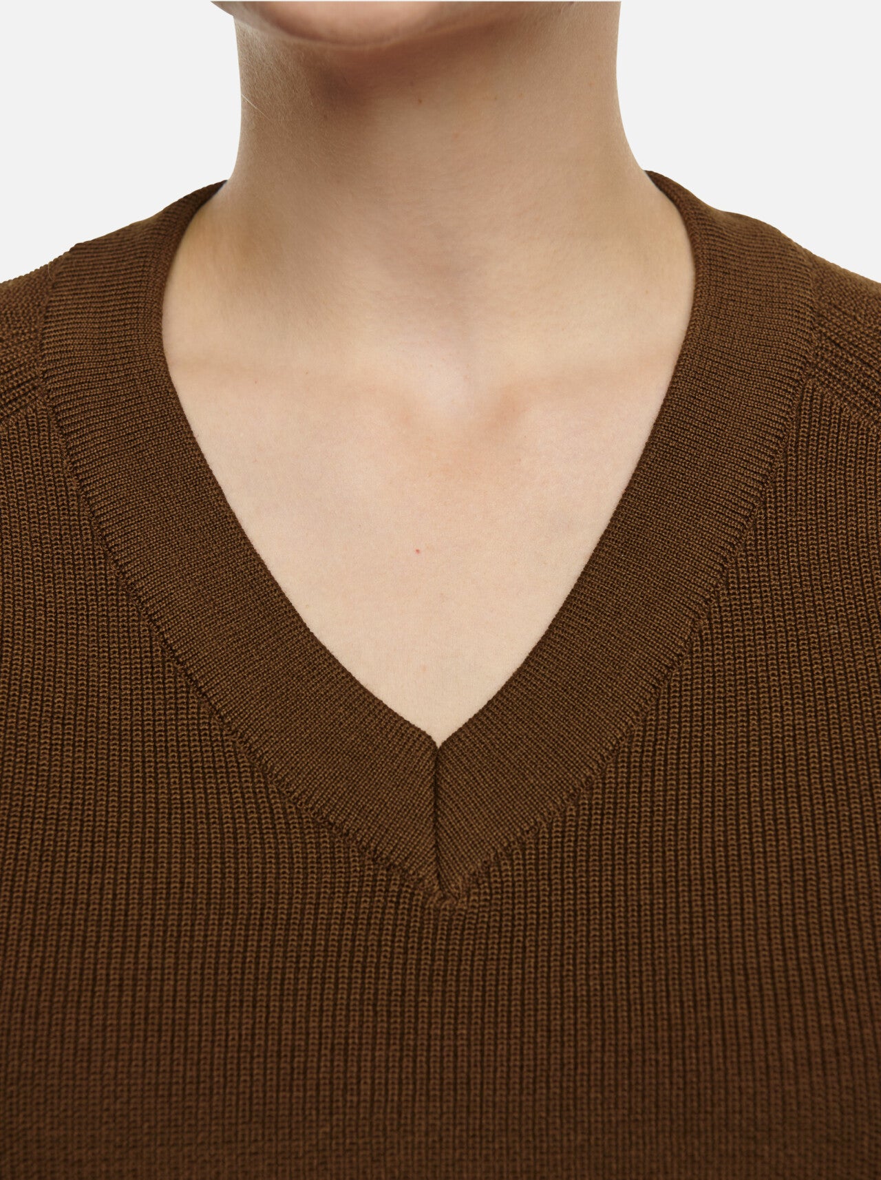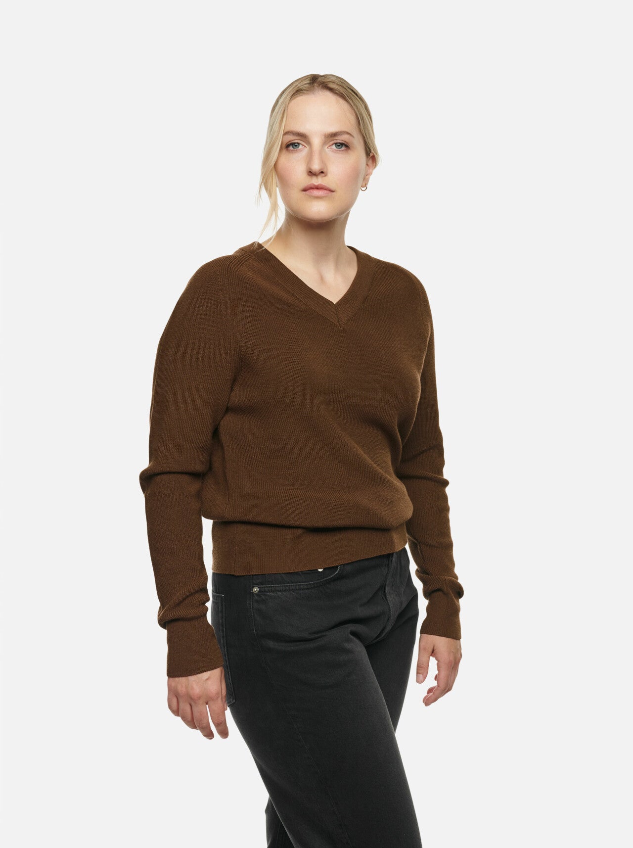 TEYM UNISEX MERINO V-NECK SWEATER (DARK BROWN)