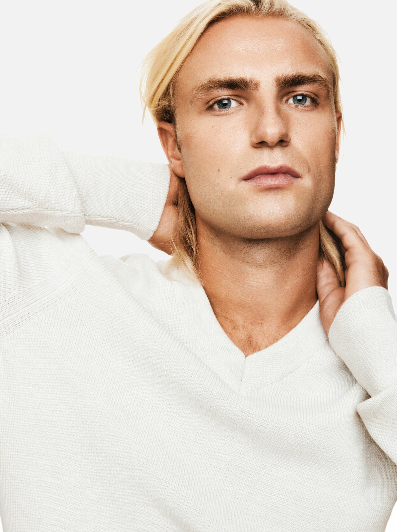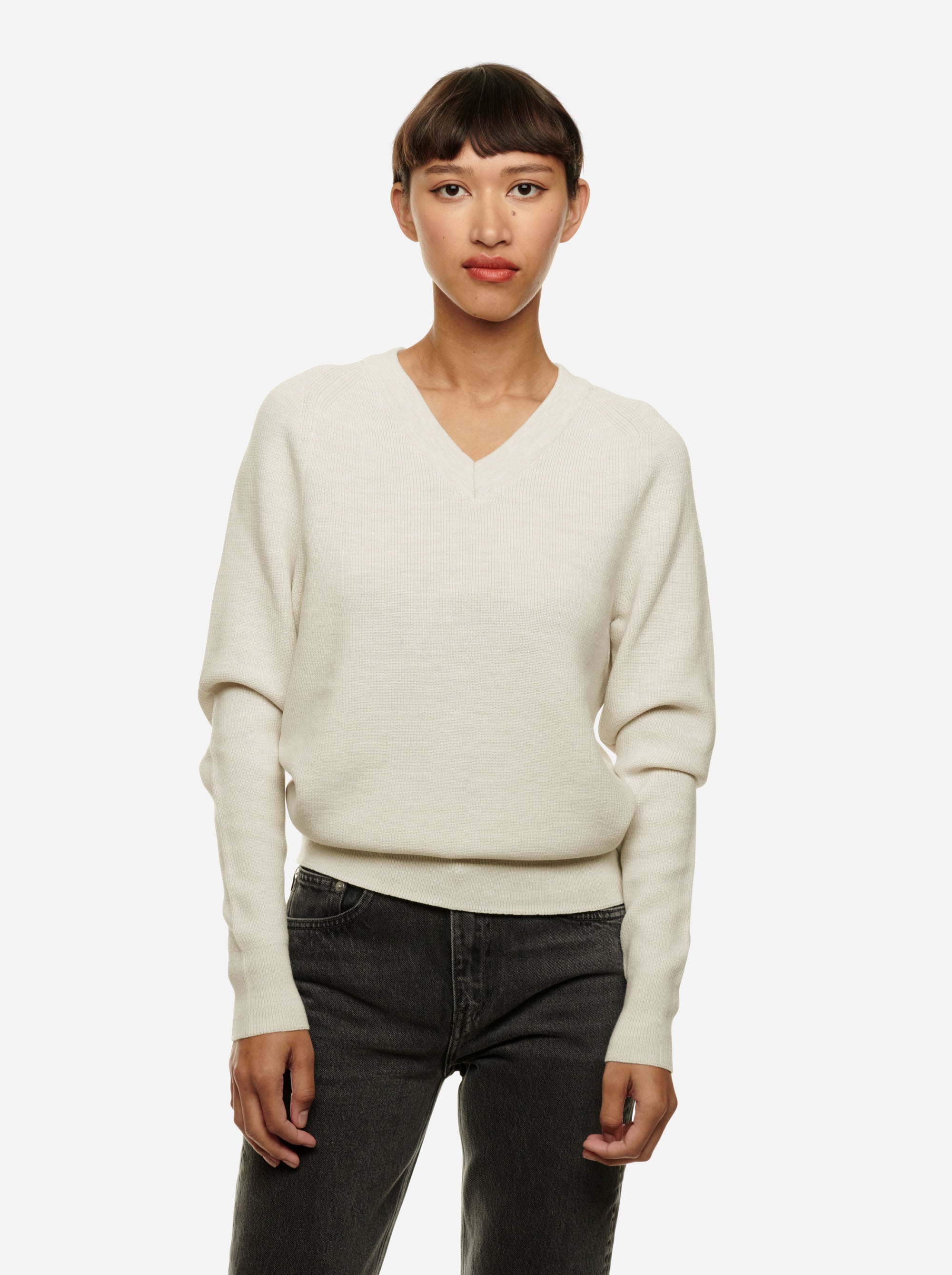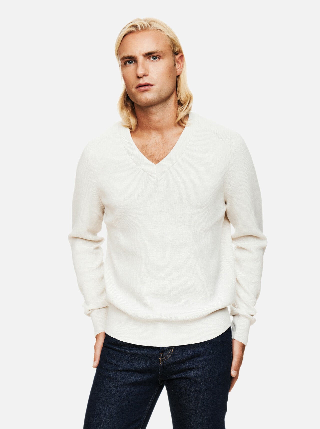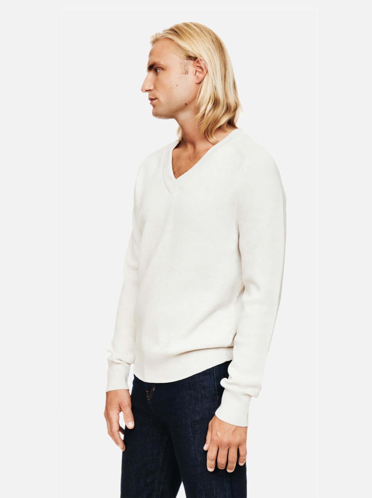 TEYM UNISEX MERINO V-NECK SWEATER (WHITE)