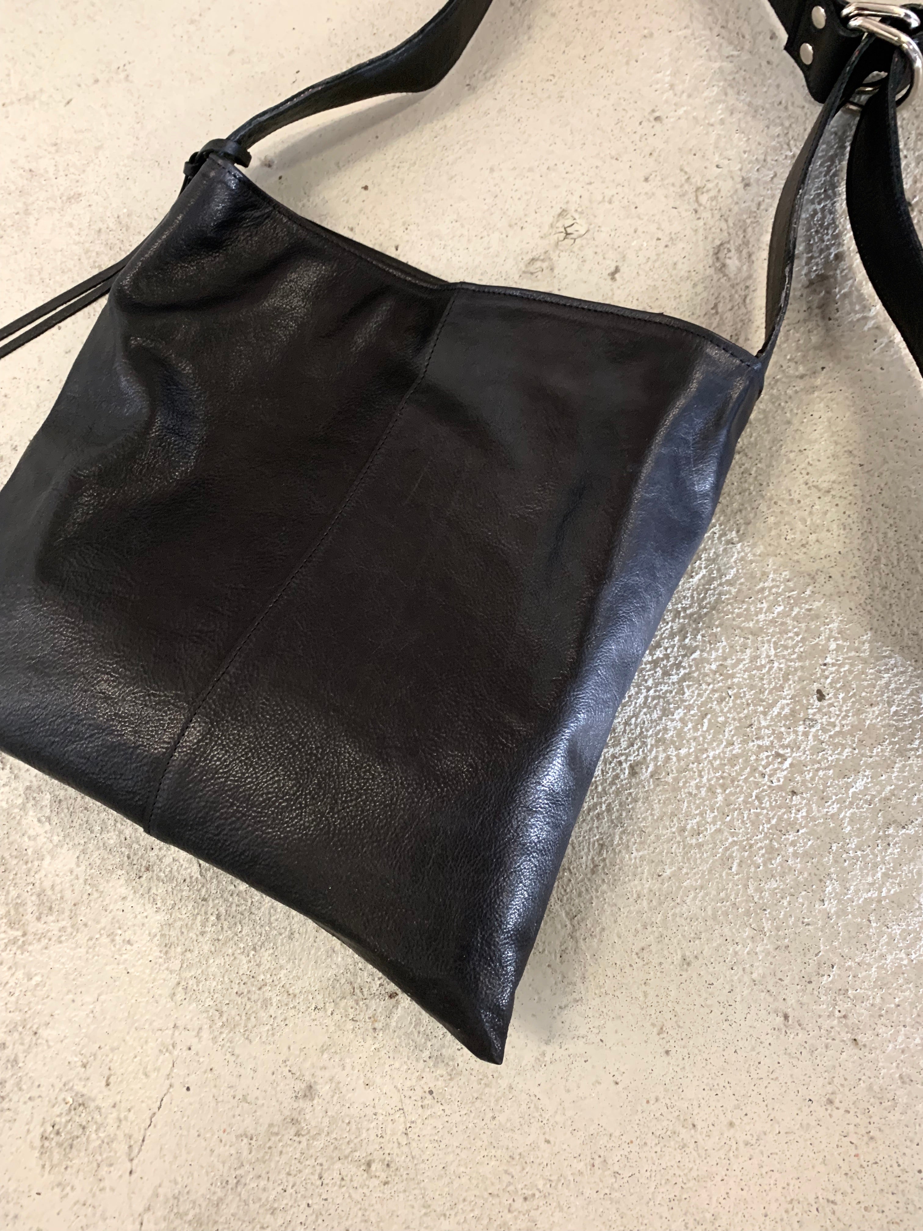 An easy flat shoulder bag that will fit your larger belongings. Made out of a beautiful & durable semi-vegetable tanned leather. Adjust the strap to your preferable length to wear crossbody or shoulder carry. Magnetic button closure. Inside zipped pocket and lined with 100% cotton.